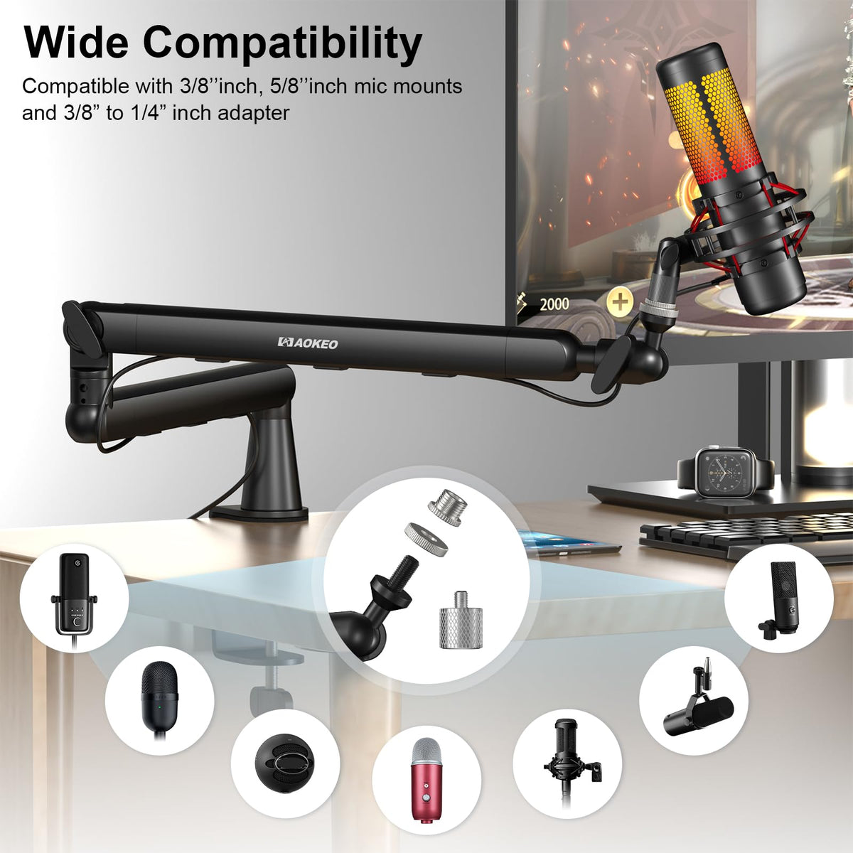Microphone Arm,Aokeo Ak 55 Desk Low Profile Adjustable Mic Boom Arm Stand,Suitable For Blue Yeti,Snowball Ice, Hyperx Quadcast,S