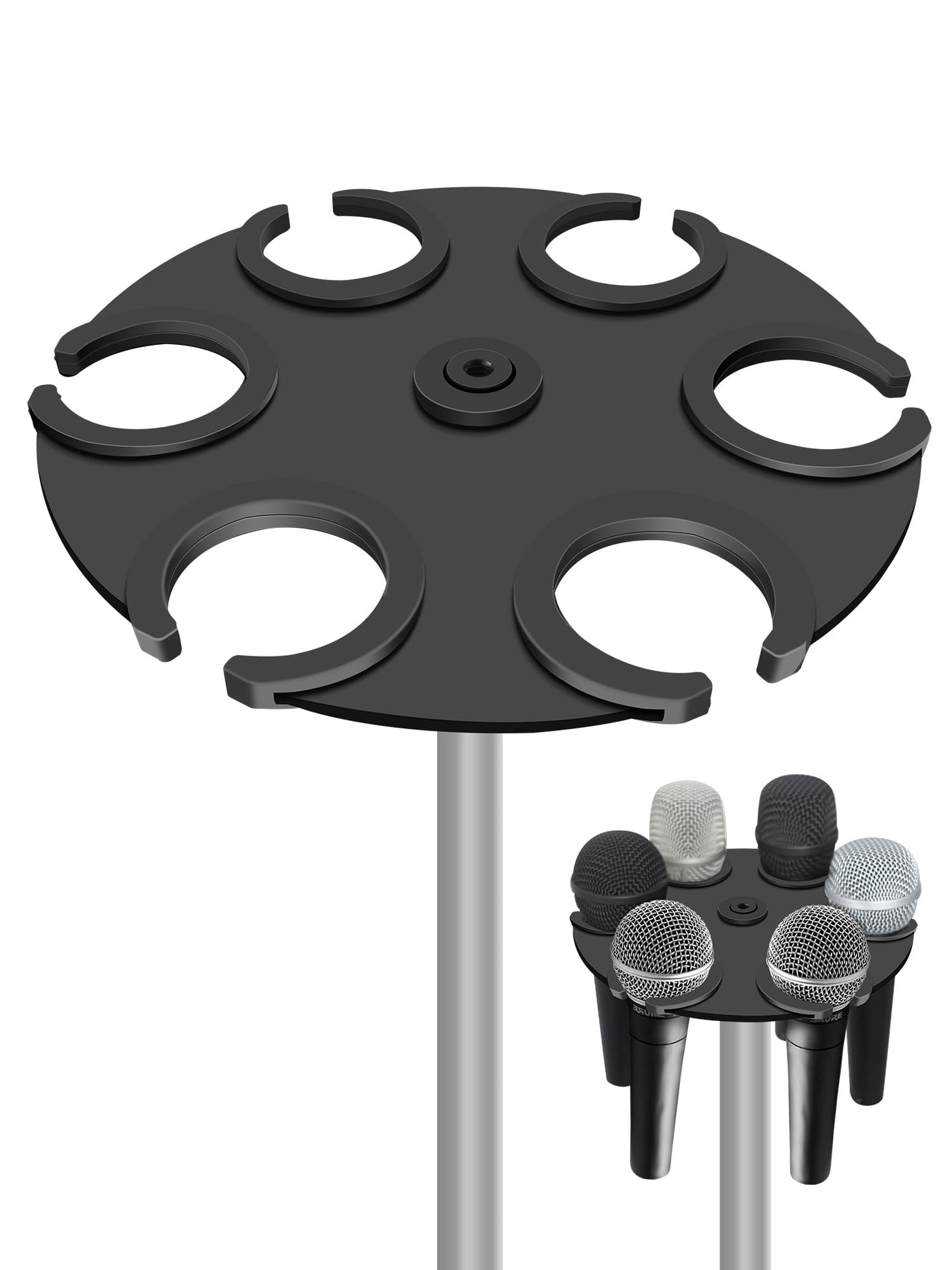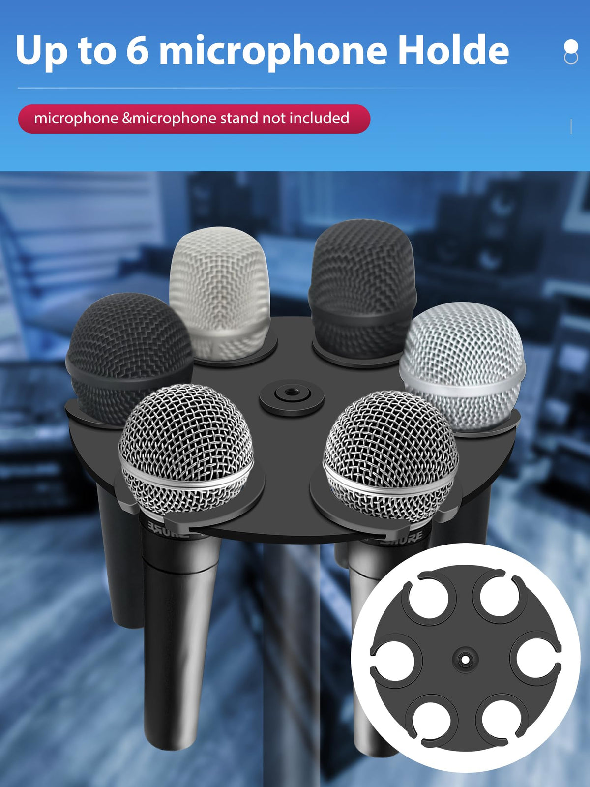Multi Microphone Holder Up To 6 Mic (Aluminum) For Handheld Dynamic, Wired And Wireless Mics, Multiple Mic Organizer For Mic Stand, Rubber Padding Mounts To 5/8''-27 Or 3/8''-16 Threaded Stands