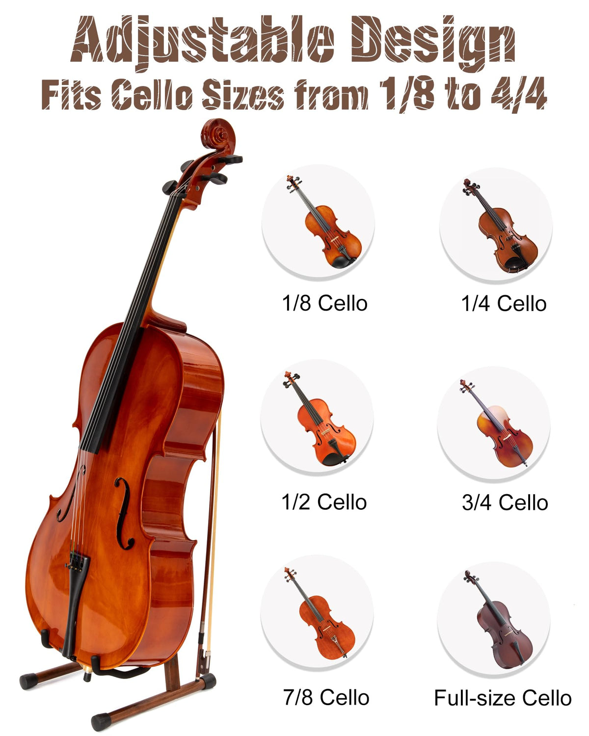 Musbeat Cello Stand, A Frame Cello Stand With Bow Holder For Cello Display, Handcrafted Wooden Cello Stand With Padded Foam, Wal