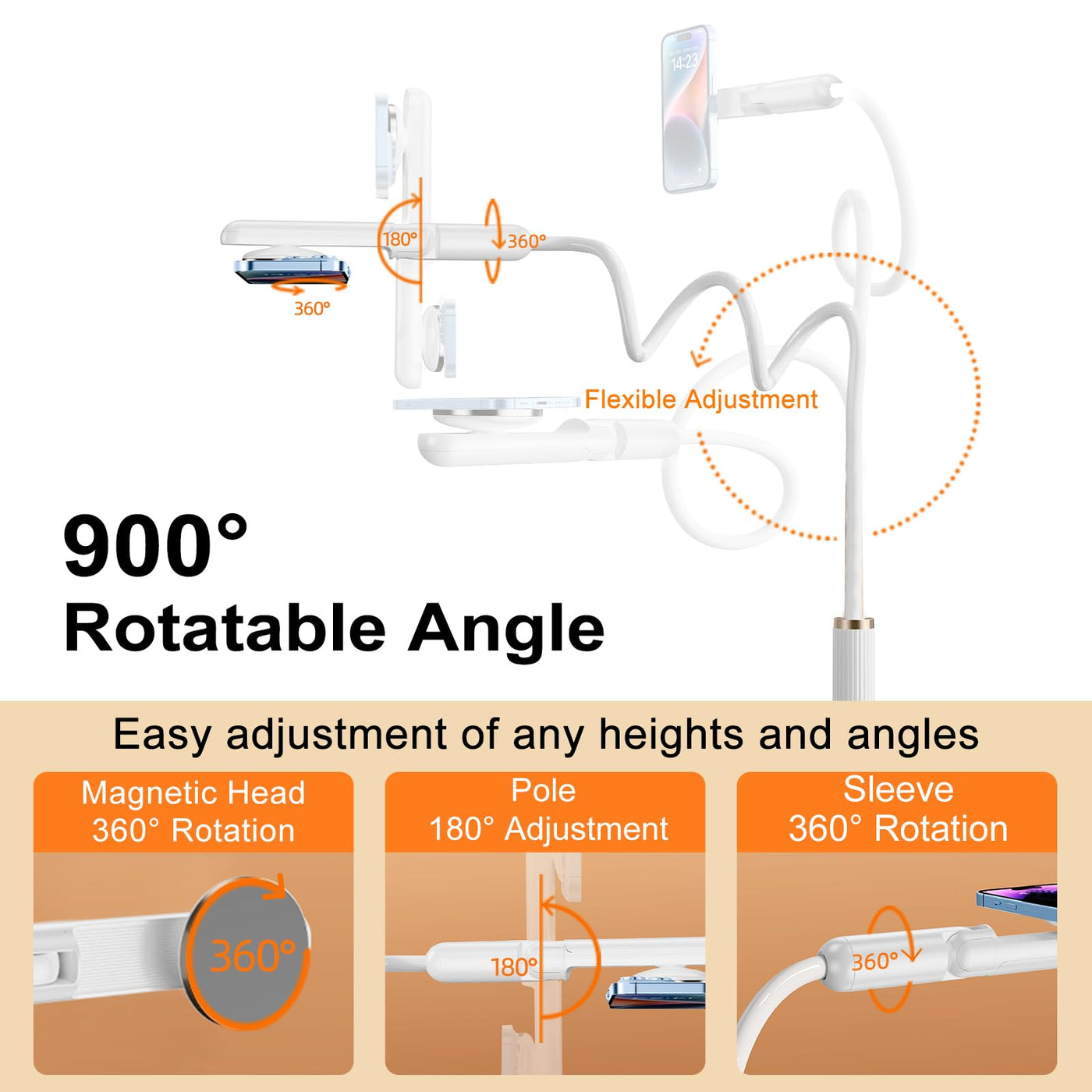 Nediea Magnetic Phone Holder For Bed, Gooseneck Cell Phone Stand With Clamp Mount, 900 Rotation Overhead Lazy Bracket With Flexible Long Arm, Compatible With Iphone16/15/14/13/12