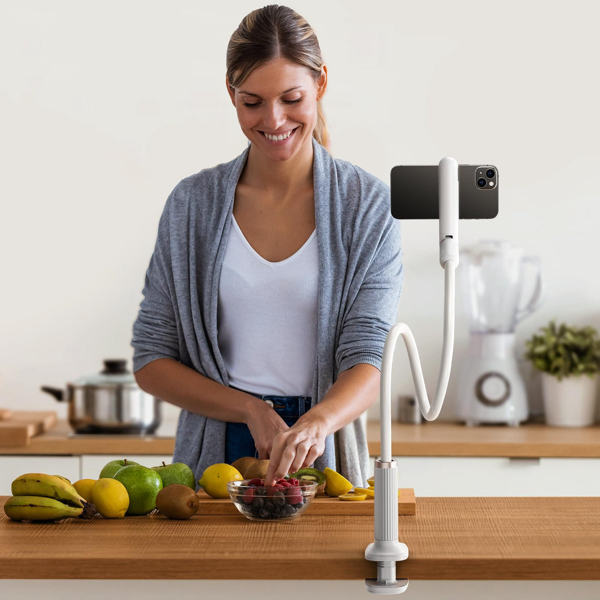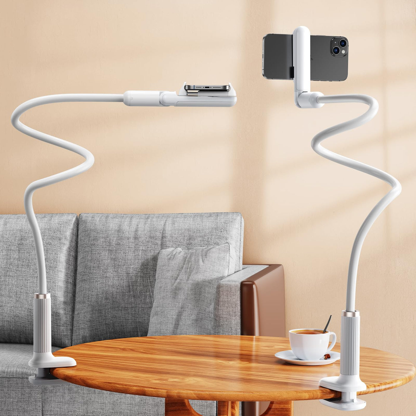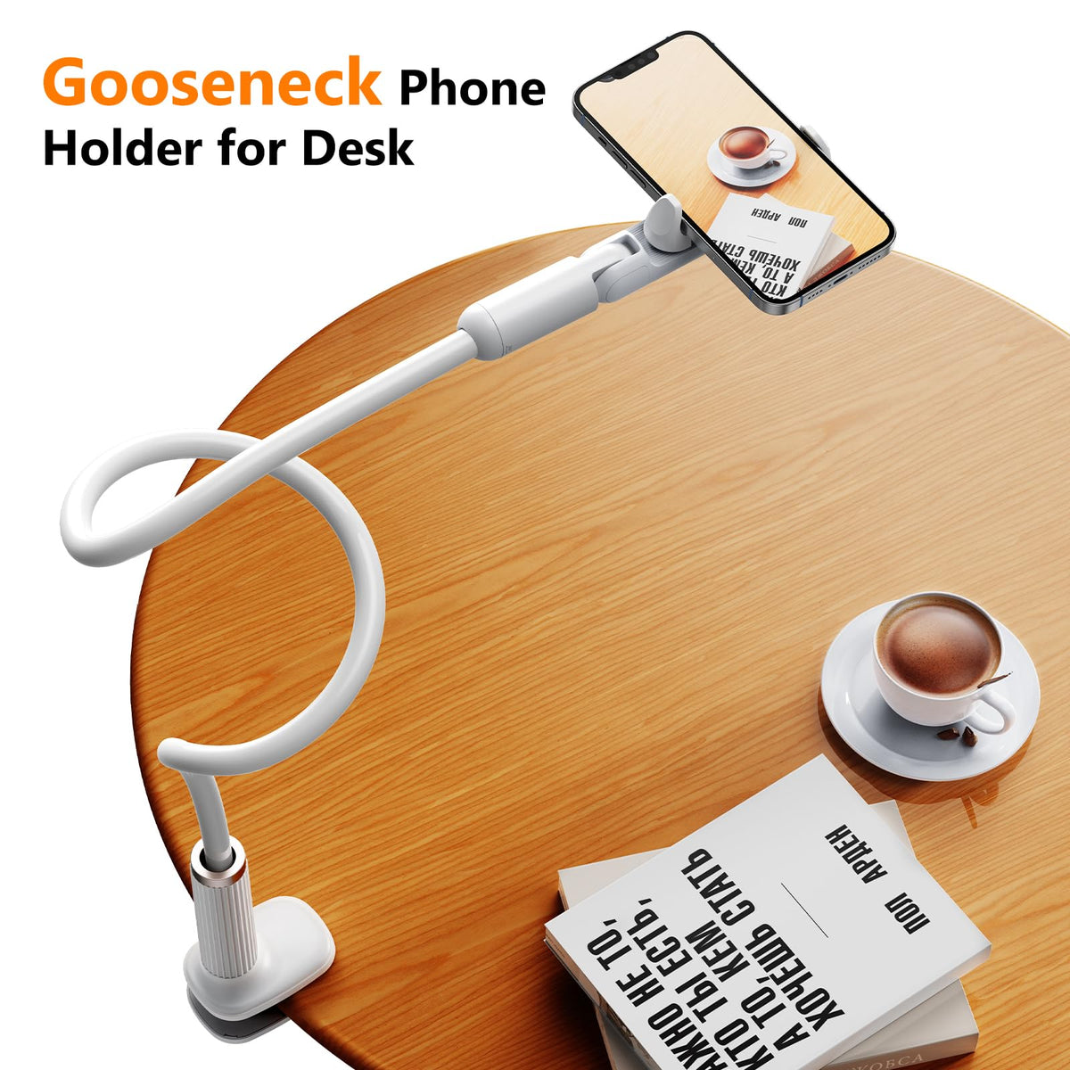 Nediea Phone Holder For Bed, Gooseneck Cell Phone Stand With Clamp Mount, 900Rotation Overhead Lazy Bracket With Flexible Long Arm, Compatible With 4.7-7 Inches Cellphone