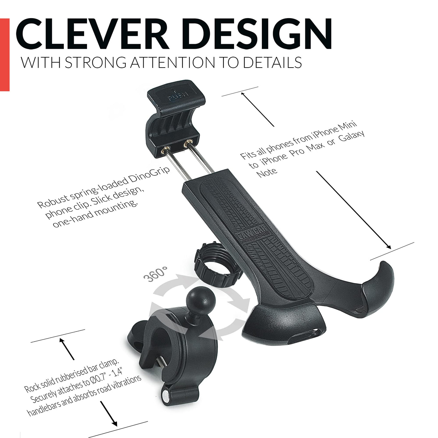Looking For The Best Bike Mount For Your Phone? Our Caw.Car Accessories Universal Dinogrip Handlebar Phone Mount Is Your Ideal Choice. This Product Stands Out After Thorough Research Into Various Holders For Bicycles, Motorcycles, Scooters, And Atvs. The Universal Appeal Of Our Patented Dinogrip Handlebar Clamp, Coupled With The Secure And Adjustable Phone Cradle, Sets Our Bike Mount Apart. Whether You'Ve Experienced Different Mounts Before Or This Is Your First, You'Ll Notice The High Quality And Thoughtful Design. Suitable For A Wide Range Of Bikes, Our Mount Is A Versatile Accessory. It'S Perfect For Those Who Ride Anything From A Classic Thin-Frame Ebike To A Robust Harley Davidson Chopper. Even Extreme Mountain Bike Riders Will Find This Mount Reliable. Your Phone Will Be Securely Held In Place By The Cradle, Protected On All Sides By Our Specially Designed Safety Rubber Belt. This Belt Is Carefully Crafted To Avoid Interfering With Your Phone'S Sensors, Ports, And Buttons. Installation Is Simple And Tool-Free. The Handlebar Clamp Is Metal-Reinforced For Enhanced Durability, And The Rubber Sling Is Strong Enough To Withstand Significant Stress. Why Wait To Get The Best Bike Mount For Your Phone? Order Now And Consider Getting An Additional One As A Thoughtful Gift For A Fellow Rider.
