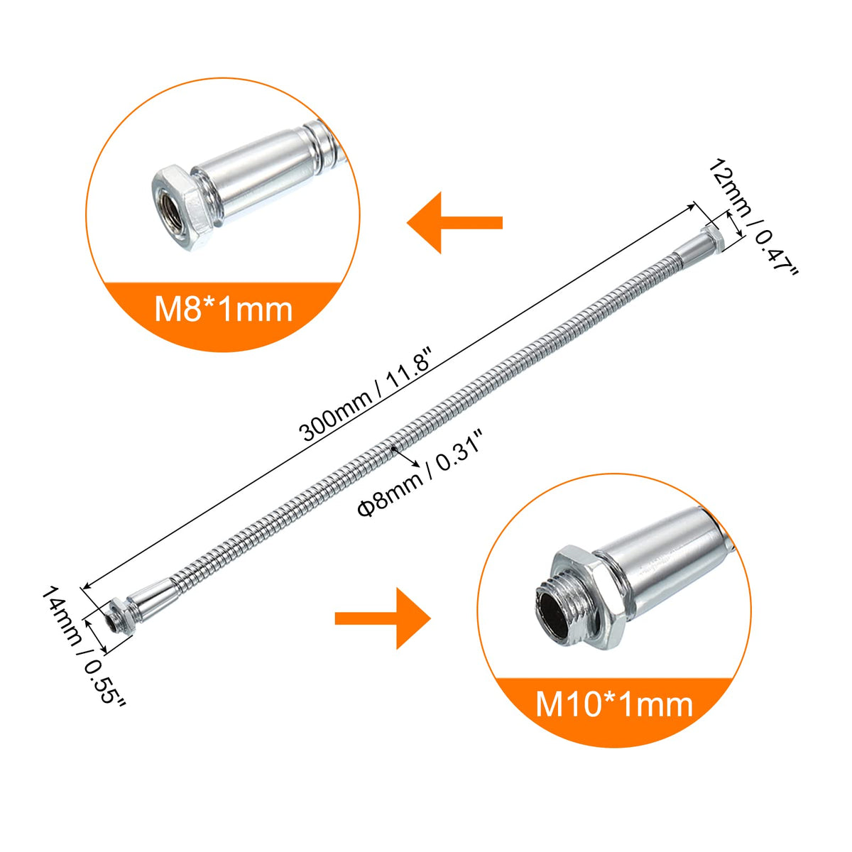 The Gooseneck Tube Can Raise Your Microphone Or Other Equipment To Your Eye Level Or Any Other Height You Want It Is Widely Used For Mic Stands, Table Brackets, Gooseneck Phone Holders, Mirror Brackets, And Other Diy Applications Requiring Flexibility, Etcspecification Color: Silver Tonematerial: Metaltotal Length : 300Mm 118 Inchout Diameter: 8Mm 031 Inchhexagon Width: 14*12Mm 055*047 Inchthread: M10M8 (Thread Pitch:1Mm)Packing List: 1 X Gooseneckadvantage Metal Material, Good Tensile Performance And Temperature Resistance, Long Service Lifehollow Design, Wire And Cable Can Pass Through It Easilyflexible And Bendable, Easy To Shapeinstruction This Gooseneck Is Hollow, And A Wire Of A Certain Size Can Be Passed Through The Tube It Can Be Bent Into A Certain Shape You Want And Maintain Its Shape The Gooseneck Can Be Attached To The Mic And Other Stands With Threadsnote: Please Check Which Thread Size You Need Before Buying