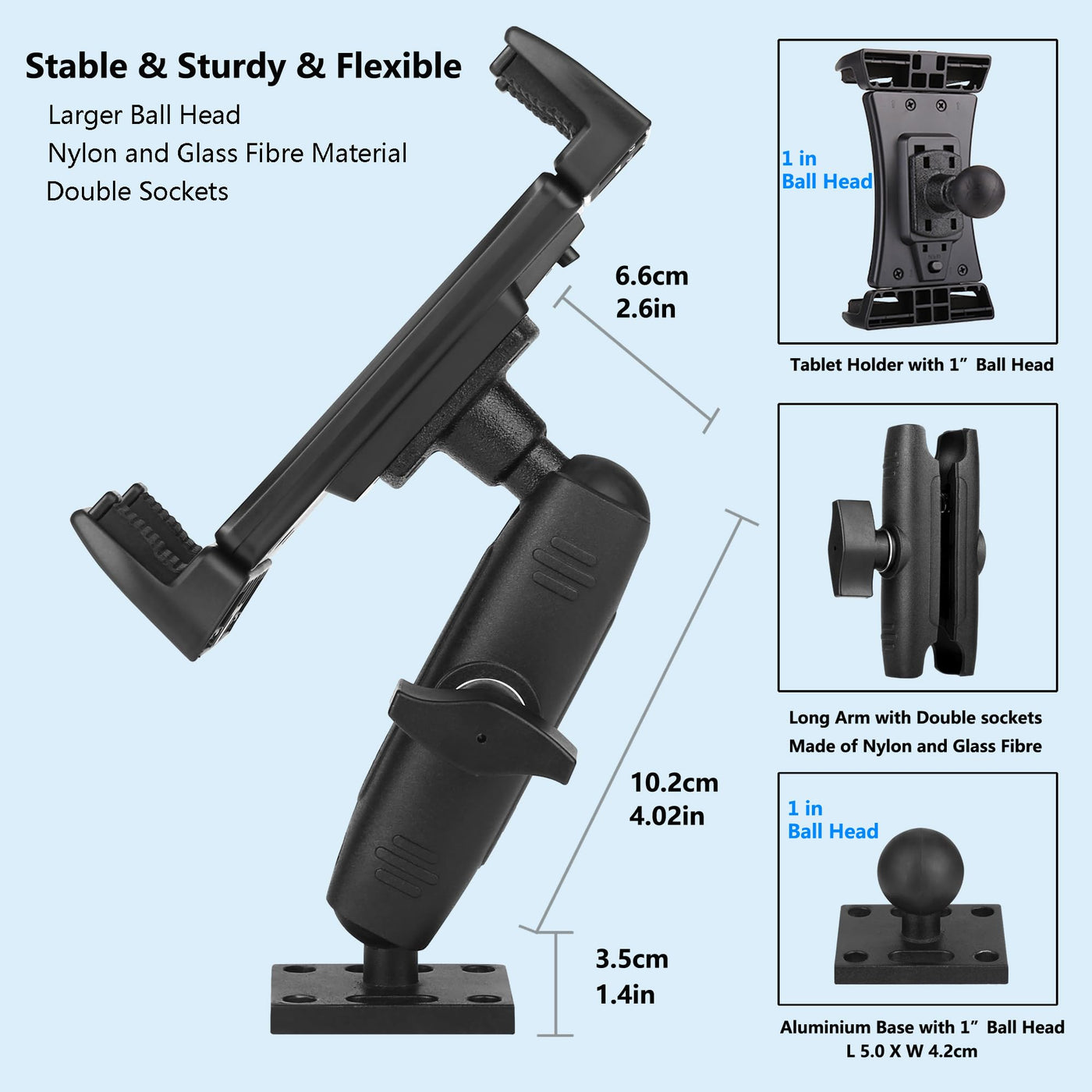 Peastrex Car Tablet Holder Heavy Duty Drill Base Dashboard Tablet Mount For Truck/Commercial Vehicles/Wall/Desk Compatible With