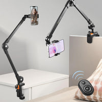 Phone Holder For Desk Bed, Overhead Mount With Wireless Remote, Flexible Phone Stand Lazy Bracket Mount Long Arm Clamp For Iphon