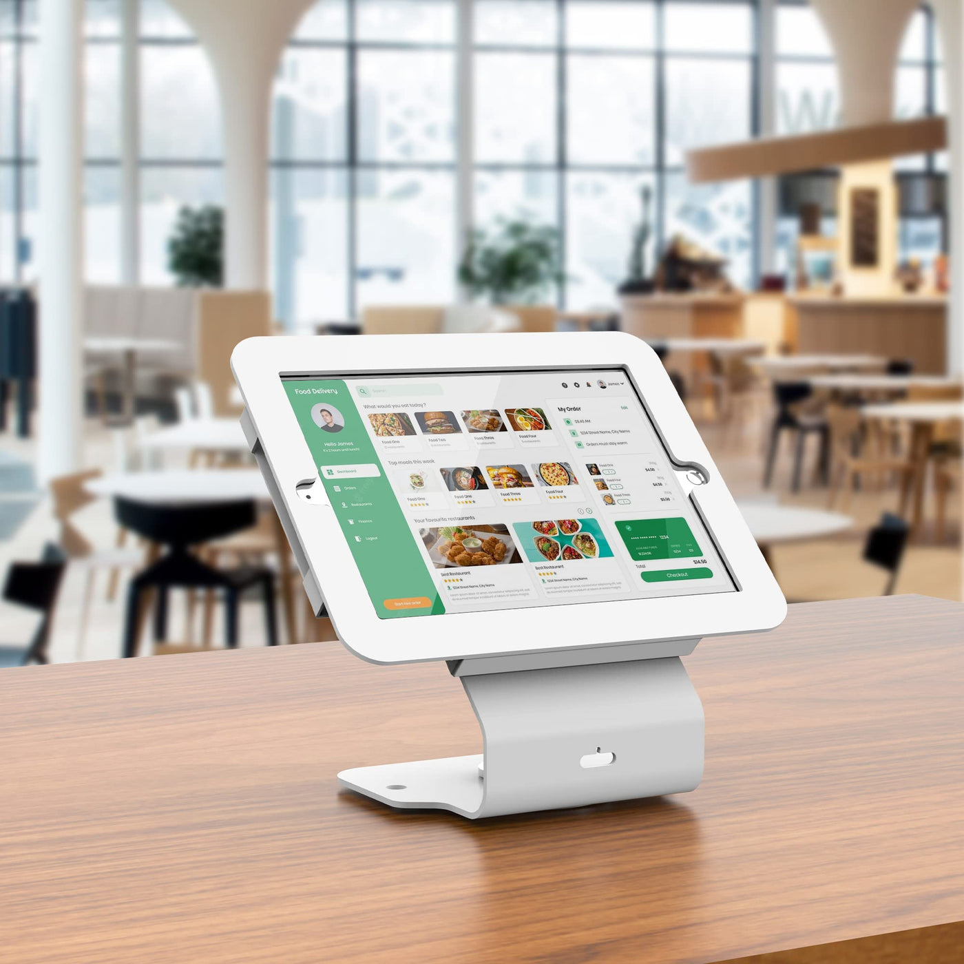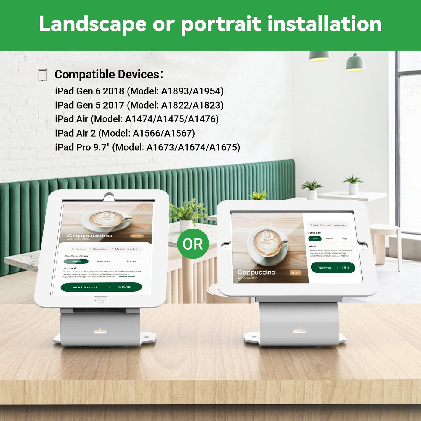 Pinikox Kiosk Pos Tablet Stand For Ipad Air 1, Air 2, Pro 9.7, Ipad 5Th, Ipad 6Th, Business Desktop Retail Ipad Stand With 360 Swivel Base, Metal, White, Psc101W