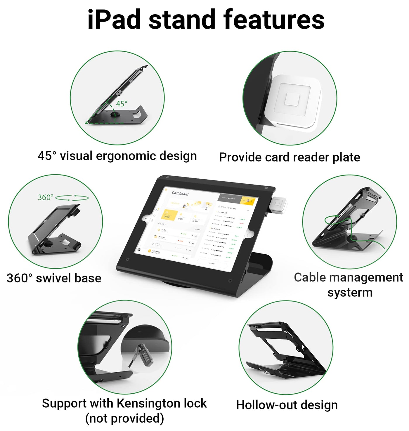 Pinikox Retail Kiosk Tablet Stand Compatible With 10.2 Inch Ipad 9Th 8Th 7Th Gen, Business Desktop Pos Ipad Stand, Anti-Theft Lock, 360 Swivel Base, Metal, Black