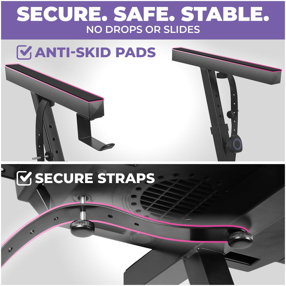 Plixios Heavy Duty Z-Style Music Keyboard Stand Was Designed To Support Some Of The Smallest To Some Of The Biggest And Heaviest Keyboards On The Market. This Fully Adjustable Keyboard Stand Was Designed To Accommodate Both The Height Of The Musician And The Width Of The Piano Keyboard. Features Adjustable Height With Wheels Attached: Between 24'' And 33.5'' (In 1.5'' Increments) Adjustable Height Without Wheels Attached: Between 22.5'' And 33.5'' (In 1.5'' Increments) Adjustable Width: Between 22.5'' And 33.5'' (In 2'' Increments) Weight Limit: 250 Pounds Locking Wheels For Easy Transportation Reinforced Z-Style Design Adds Extra Support For Heavier Keyboards Spring Loaded Locks Make Adjusting The Height And Width Effortless Easy Assembly And Lightweight Design Makes This Stand Very Portable No Slip, Anti-Skid Pads Keep Your Piano Firmly In Place And Prevent Surface Scratches The Versatile Height Settings Allow Users To Play Seated Or Standing The Open Stance Of The Z-Style Supports Accommodate A Range Of Foot Pedals And Piano Benches Each Piano Keyboard Stand Comes With A Full Three-Year Warranty.