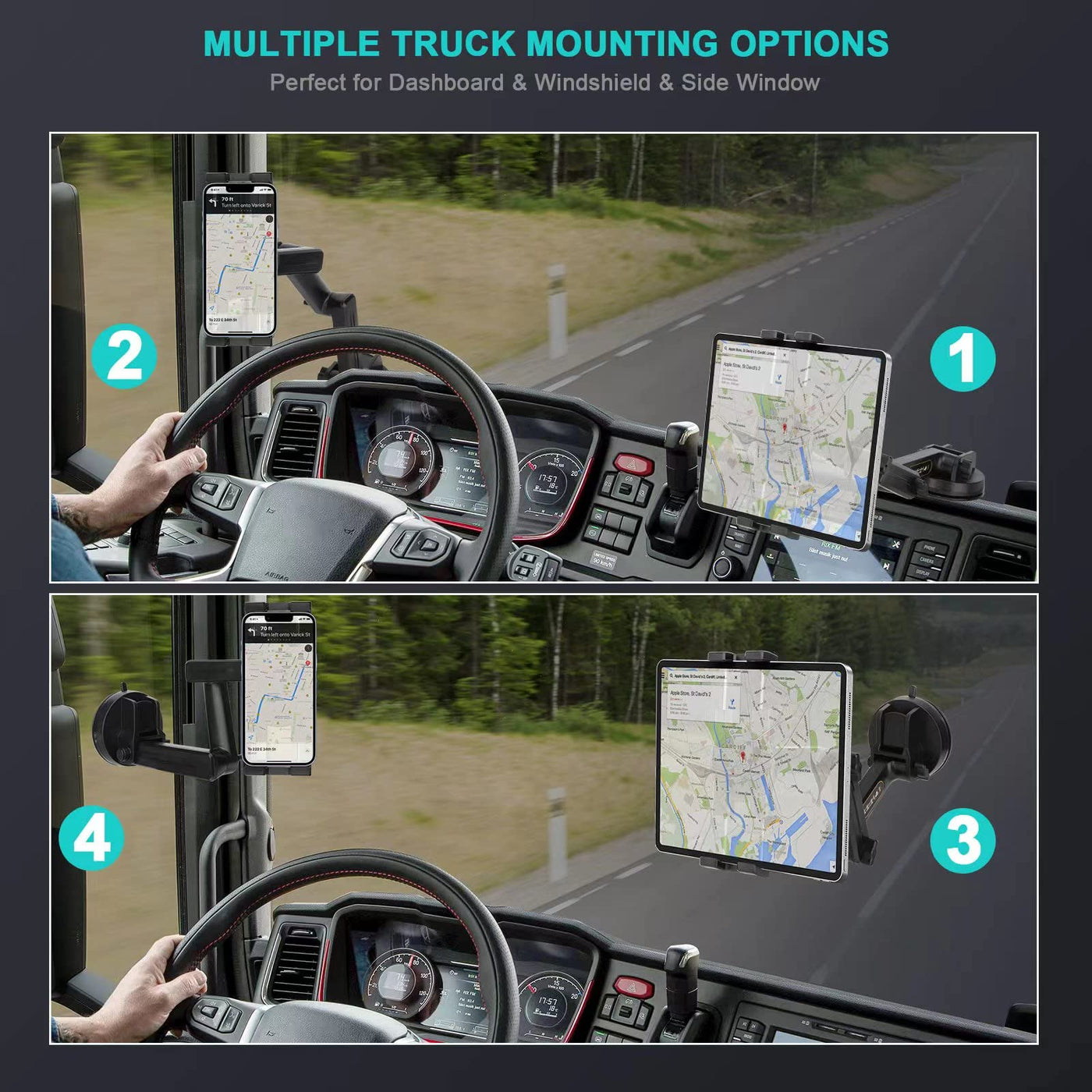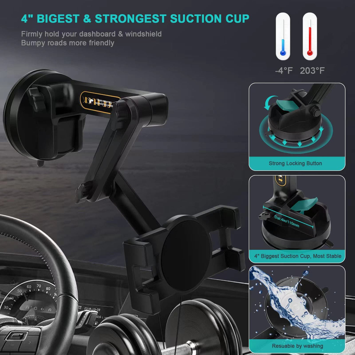 ?4'' Strongest & Reusable Suction Cup?The Super Strong Vacuum Suction Cup Of This Ipad Pro 12.9 Car Mount Is 4'' Diameter, Features A Layer Of Sticky Gel And One-Step Locking System, Which Secures The Ipad Truck Mount Sturdy In Place, Eventhough On A Very Bumpy And Tough Trip, Meanwhile Not Leave Any Residue Or Mark On The Surface When Removed. (Note: The Suction Cup Is Reusable And Washable, If It Gets Dirty Or Loses Its Grip, Simply Rinse In Water And Let Air Dry To Restore The Stickiness. ) | ?16