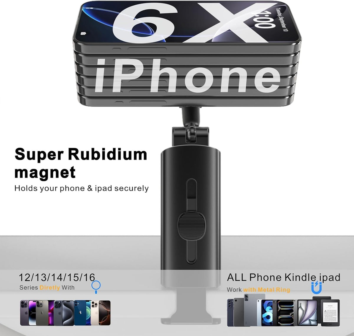 Puretor Magsafe Airplane Phone Holder For Iphone 16/15/14/13 Pro Max. 360 Adjustable, Ultra-Secure Magsafe Grip. Ideal For Flights & Desks, Durable, Easy-Install.