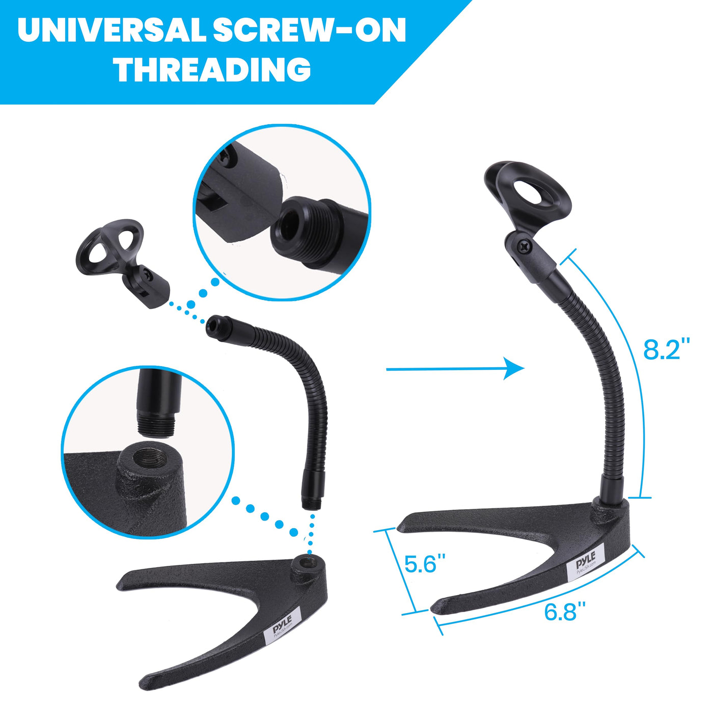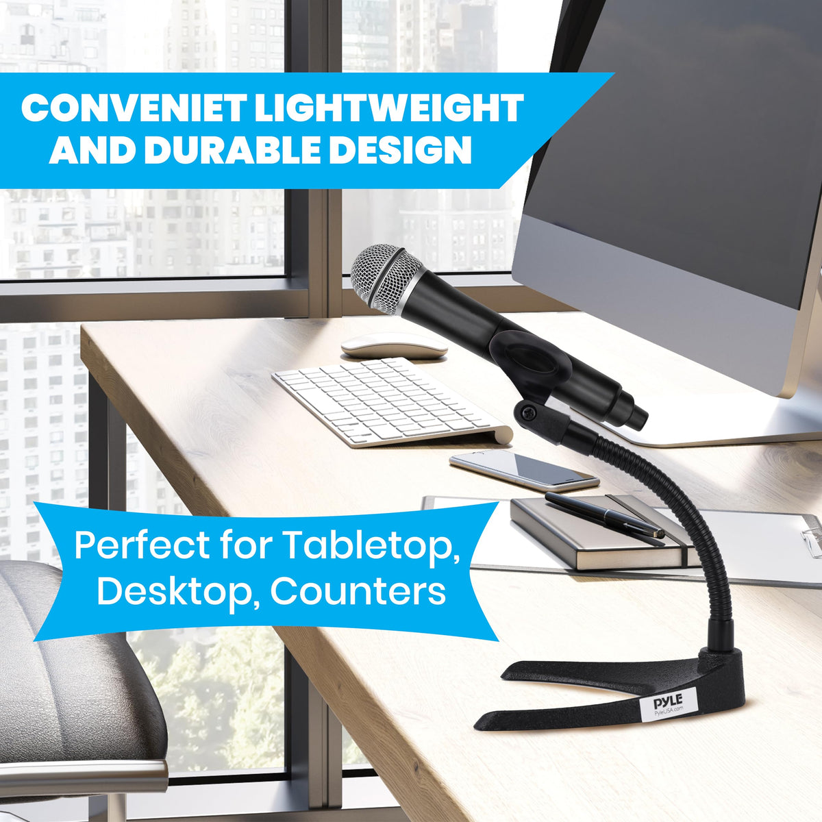 Pyle Desktop Microphone Stand Universal Tabletop Mic Holder W/ Flexible 8.2'' Inch Gooseneck Mount And Solid U Shape Base Pe
