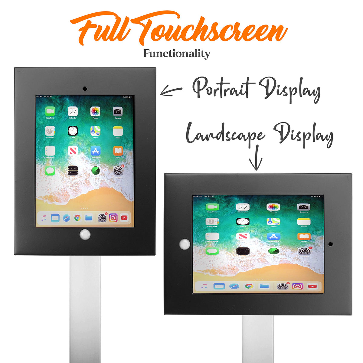 Safely And Securely Place Your Ipad On Display. This Ipad Enclosure And Stand Provides Companies And Merchants With A Simple, State Of The Art, Solution For Information Access And Digital Signage. This Kiosk Is Constructed From Fortified Steel And Heavy-Duty Aluminum Ensuring The Safety Of Your Device When Inserted. Each Enclosure Can Be Placed In High Traffic Areas Such As Front Desks, Lobbies, Customer Counters, Work Desks, Or On Showroom Floors. With Access To The Home Button, Users Will Be Able To Interact With On Screen Content And Navigate Programming And Menus. Mount Your Ipad In Landscape Or Portrait Mode With Up To 90Degree Of Vertical Mobility. Secure The Stand In Place And Bolt It Down Or Move It Around Freely. However You Choose To Use This Stand, You'Ll Have A Sleek, Safe, And Smart Way To Address Your Tablet Needs. Item Weight: 12.69 Pounds