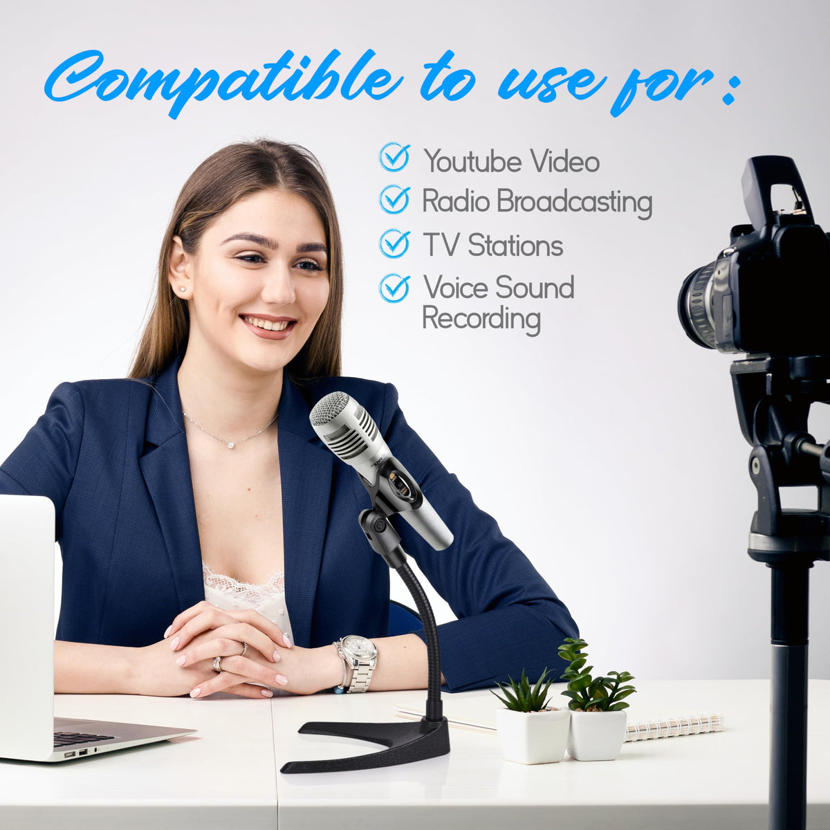Pyle Universal Adjustable Desktop Microphone Stand - Tabletop Mic Holder Low Profile Mic Stand W/ Flexible 8.2 Gooseneck Mount