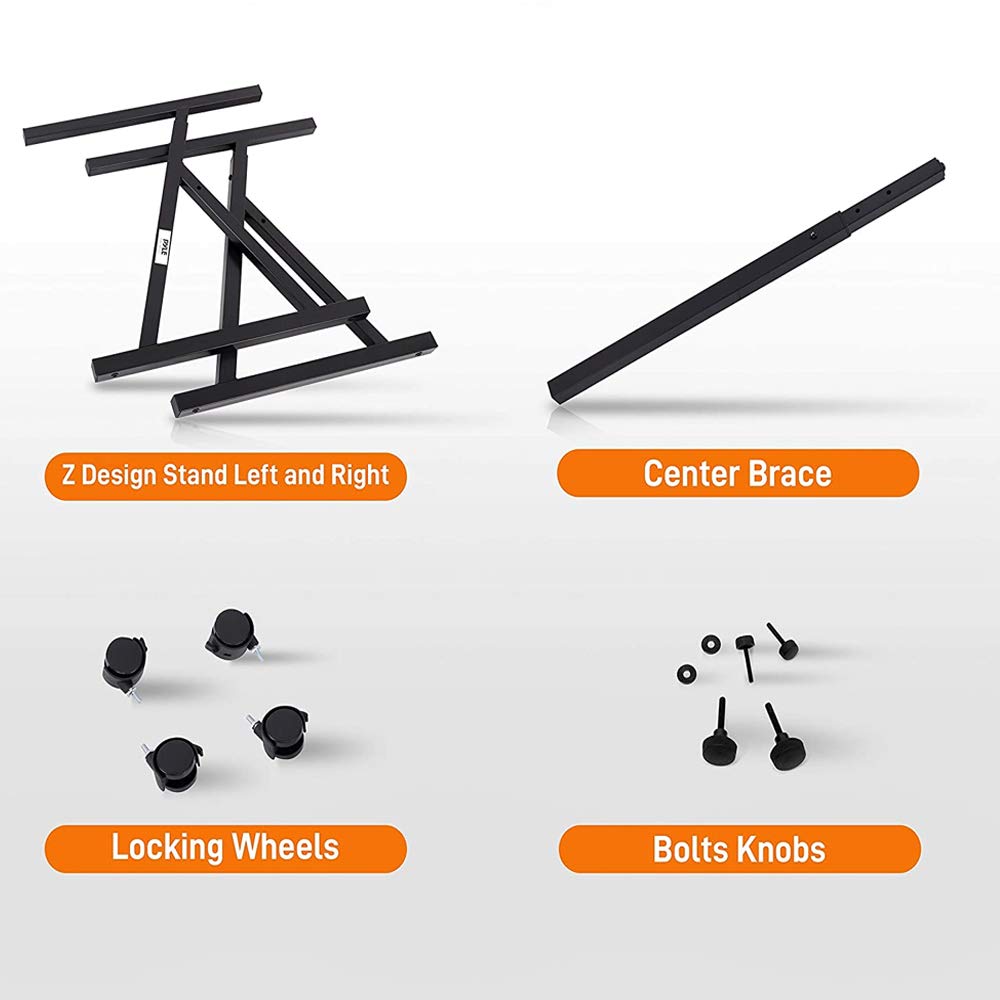 Features: - Safe & Reliable Keyboard Placement - Rugged & Durable Metal Construction - Quick & Convenient Height Adjustment - Secure Stability-Lock Mechanism For Reliability - Unique Z-Design For Maximum Stability - Anti-Slip Rubber Grip Foot Caps - Works With Digital/Electronic Piano Keyboards - Perfect For Seated Or Standing Performances - Folding Design For Travel And Storage - Glossy Black Finish - Locking Wheels - Knob Bolts For Quick & Convenient Height Adjustment - Easily To Set Up Or Adjust Height & Width Of The Stand - Includes Wheels For Transport & Home Use Whats In The Box: - Digital Piano Stand Technical Specs: - Adjustable Height With Wheels Attached: 22 X 35.4 -Inches - Adjustable Width With Wheels Attached: 22.8 X 39.8 -Inches - Construction Material: Steel - Minimum Height: 22 -Inches - Maximum Height: 35.4 -Inches - Maximum Weight Load Capacity: 85 Lbs. - Folded / Closed Dimensions (L X W X H): 21 X 2.6 X 20.7 -Inches - Open / Extended Dimensions (L X W X H): 19.68 X 22.83 - 39.76 X 22 - 35.4 - Inches