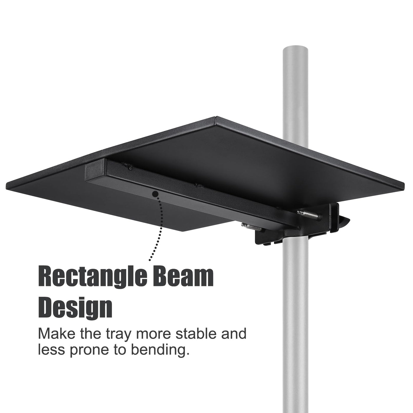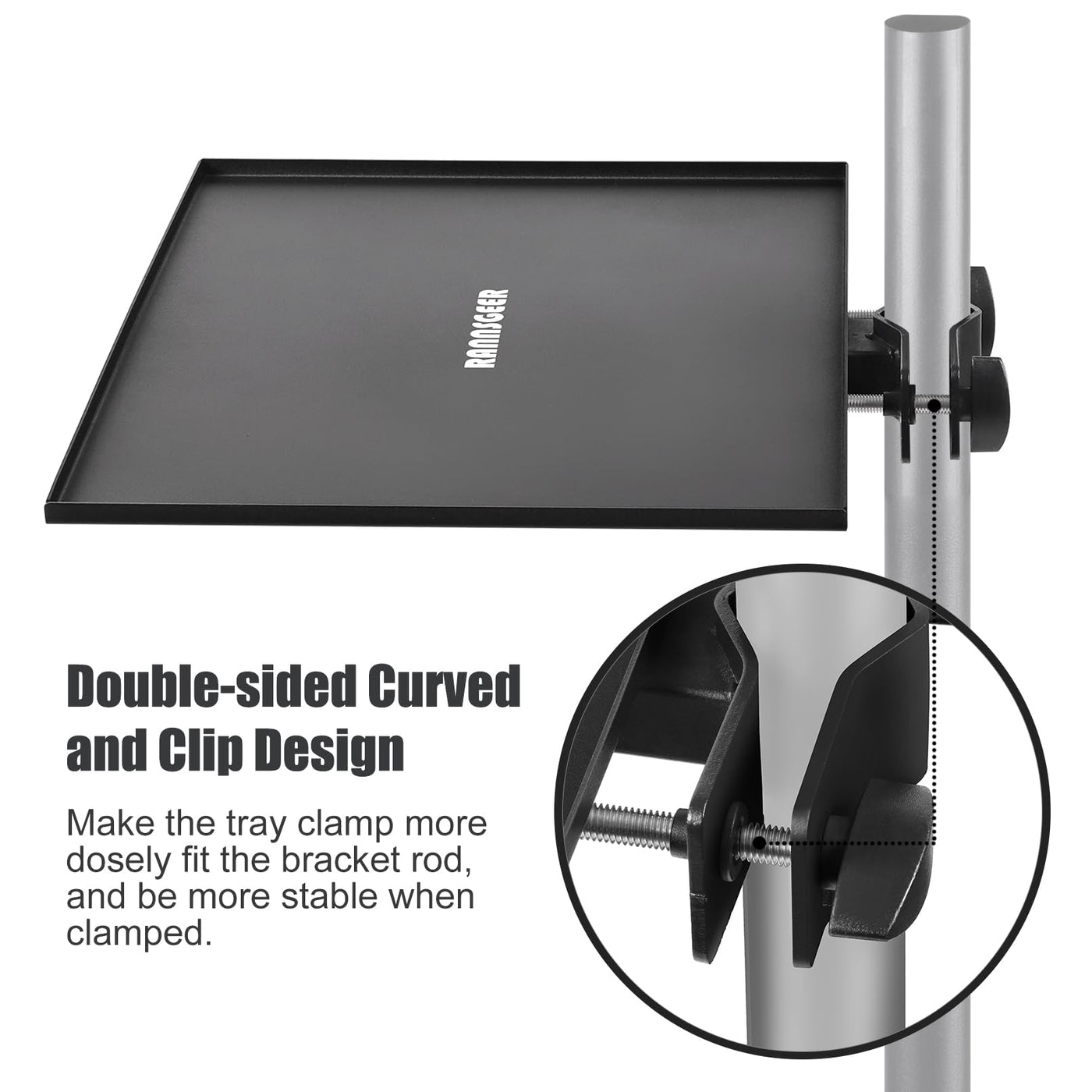 Rannsgeer Steel Tray For Microphone Stand Clamp-On (10.8 X 7.8) Portable Size Tray For Microphone Stand And Speaker Stand With Surface Area 10.8 Width X 7.8 Depth. Conveniently To Reach/Work With Your Device In Any Direction. This Heavy-Duty Steel Tray Is Made Of Premium Metal Material With Powder Coating Finish For Stability And Firm The Clamp Is Adjustable And Is Design With Easy Assembly. No Tool Requires, Just Screw The Clamp To Clip At Your Desire Stand. Capacity Load Weight Is Up To 12 Lbs