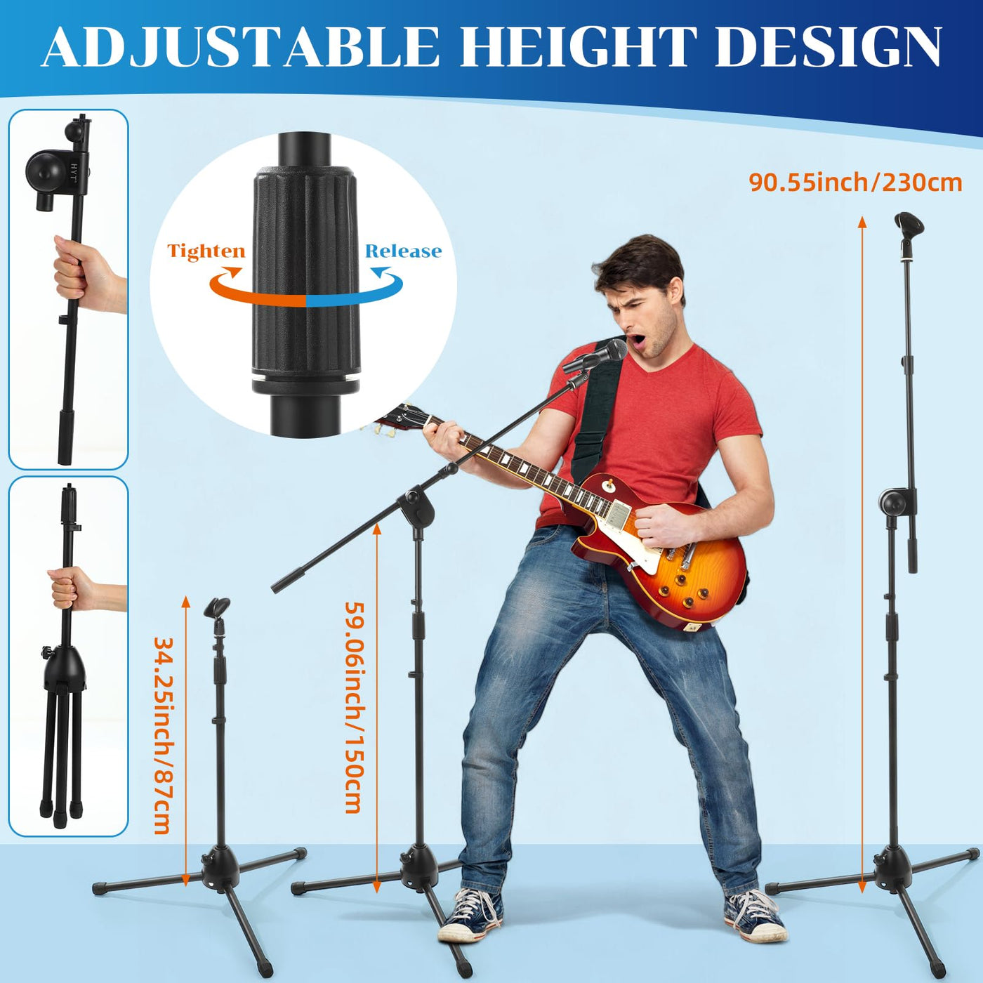 Relaxweex 6 Pcs Universal Mic Stand Floor Tripod Boom Arm Microphone Stand Height Adjustable From 34 To 90.5 With Carry Bag And