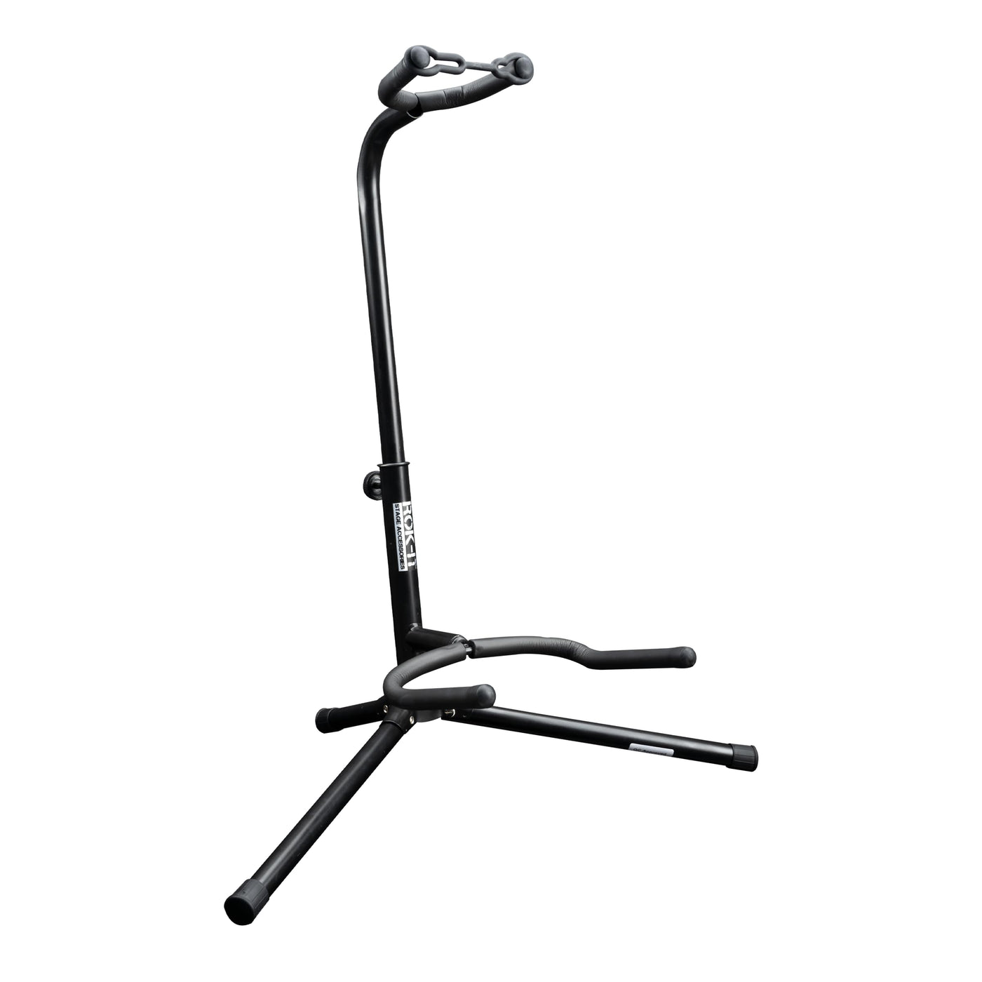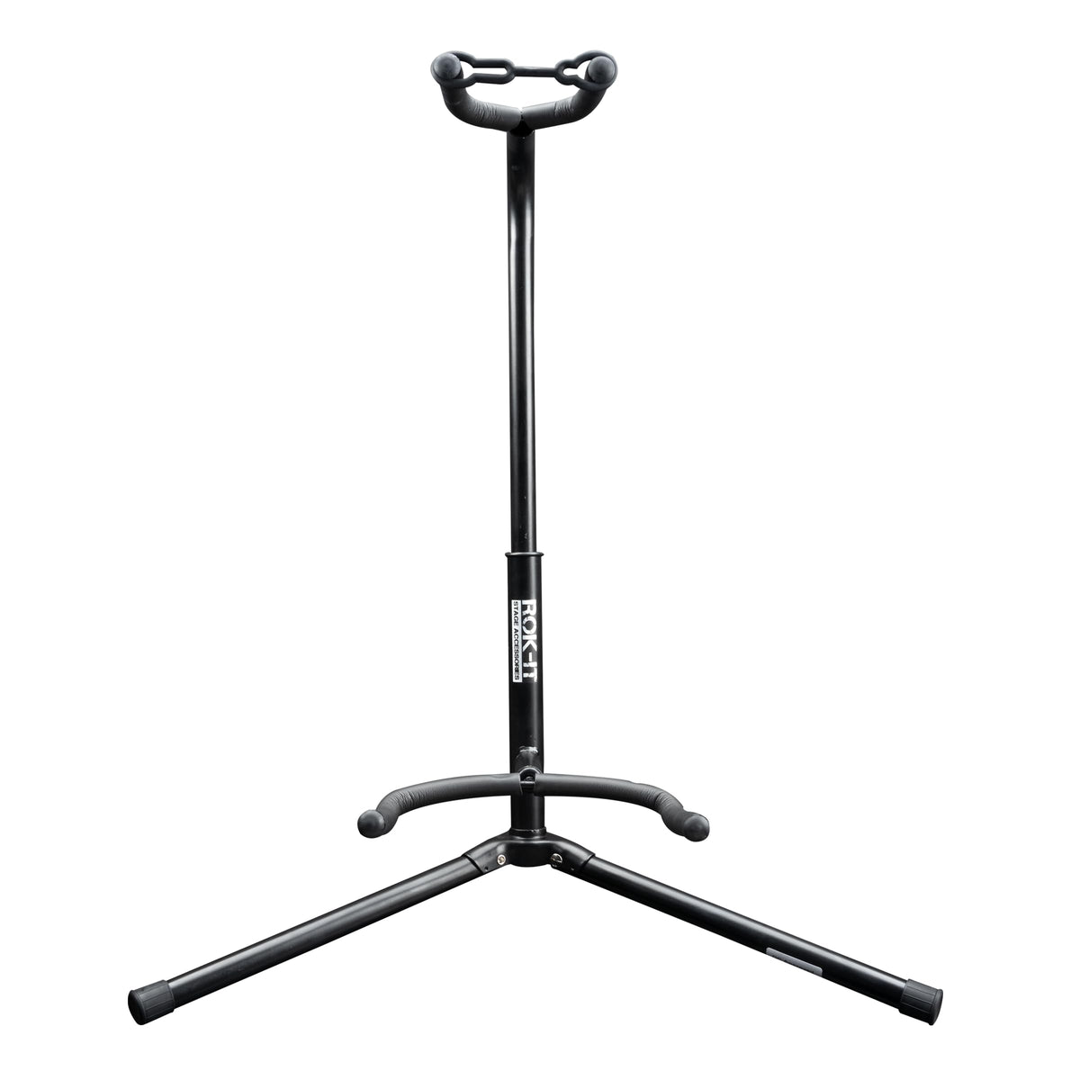 The Rok-It Guitar Stand Is Constructed With Heavy Duty Metal Tubing To Keep Your Guitar Secure And Upright. This Stand Holds Both Electric And Acoustic Guitars. The Padded Body And Neck Cradles Protect Guitar Finishes By Aiding In The Prevention Of Scratches And Scuffs. The Rok-It Guitar Stand Features A Powder Coat Matte Black Finish And Is Equipped With Rubber Feet To Prevent Damage To Flooring And Surfaces. A Twist Knob Is Located On The Back Of The Stand; Which Allows For Height Adjustment Of The Neck Cradle. An Integrated Security Strap Holds Your Guitar In Place. Protect Your Guitar From Falling Over And Getting Damaged With The Rok-It Guitar Stand!