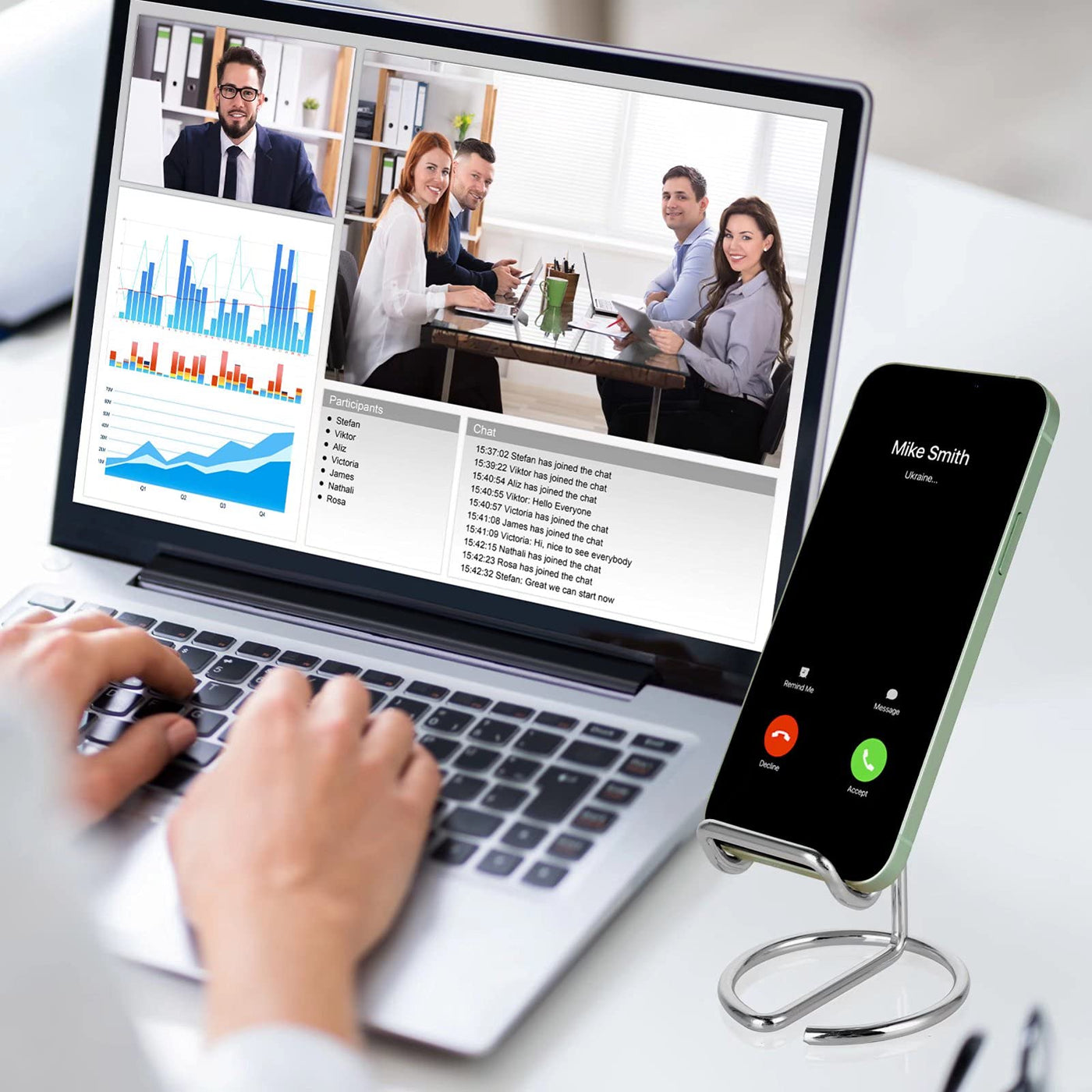 Roposy Cell Phone Stand For Desk, Cute Metal Silver Cell Phone Stand Holder Desk Accessories, Compatible With All Mobile Phones,