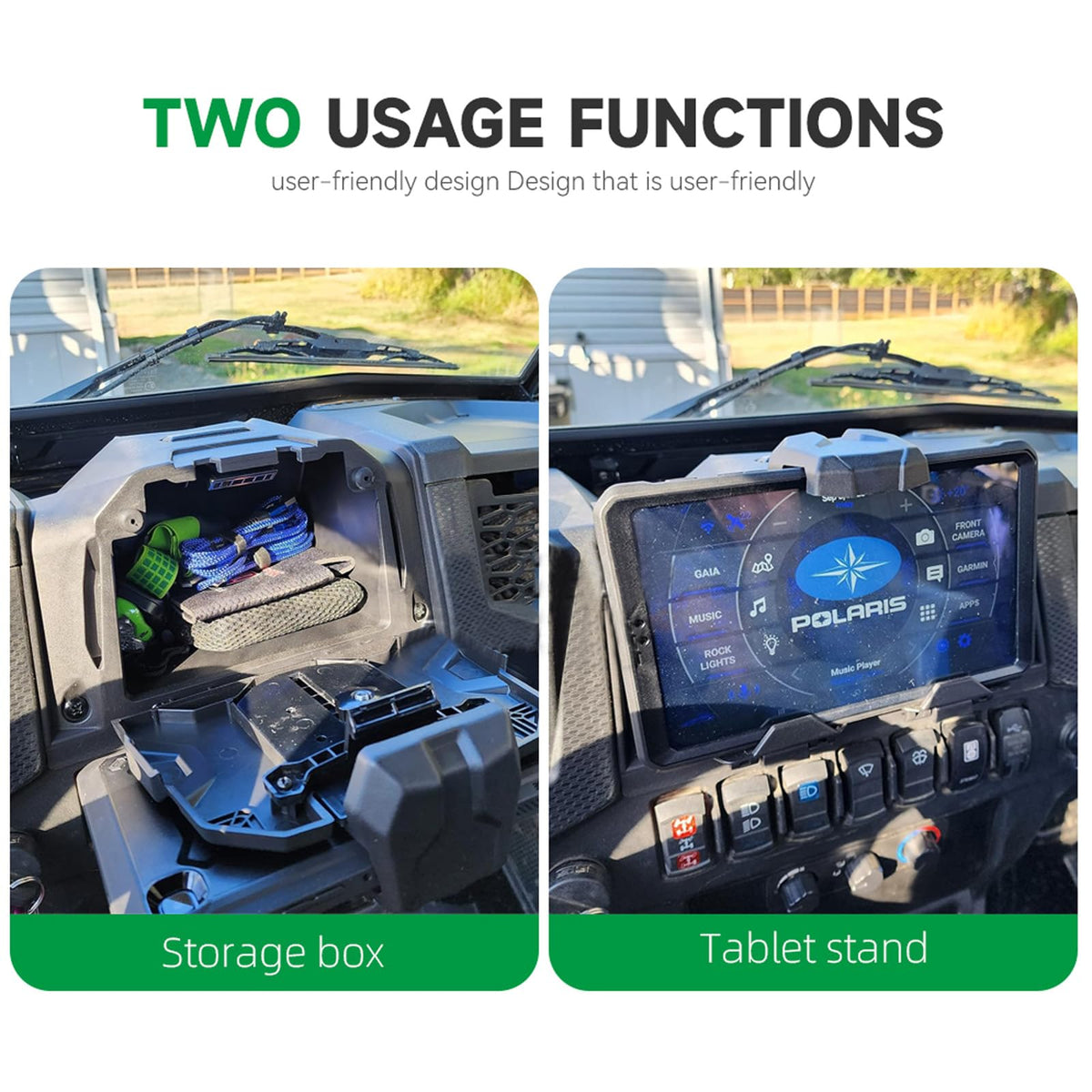 Electronic Device Holder For Kawasaki Teryx Krx 1000 For Kawasaki Teryx Krx 1000 2020 2021 2022 2023 For Kawasaki Teryx Krx 1000 Special Edition 2021 2022 2023 For Kawasaki Teryx Krx 1000 Trail Edition 2021 2022 2023 Easy Installation. Electronic Device Holder Will Be Installed Above The Dash, No Need To Drill And Modify. Adjustable Clamp. Electronic Device Holder Can Hold Most Tablets And Smartphones Between Dimensions Of 5.1 And 10'' (With Protective Case). Hidden Storage Box. Electronic Device Holder Adopts Hidden Design, Does Not Occupy Too Much Space, Convenient Storage Items. Package Include: 1Pcs Electronic Device Holder With Integrated Storage Box, Mount Hardware Features: - The Larger Capacity Can Hold More Items. - Steady Grip & Material Soft Rubber-Coated Support Arms Hold Your Devices Securely And Prevent Scratches On The Device. Durable Frosted Pp Plastic. - Adjustable With The Electronic Device Holder, Your Device Is Locked Into Place To Accommodate Practically All Application Behavior Witnessed On The Screen Especially When You Want To Use Navigation Apps Like Apple Maps, Google Maps, Waze, Etc. Note: - Light Shooting And Different Displays May Cause The Color Of The Item In The Picture A Little Different From The Real Thing. - The Product Does Not Include Installation Instructions, Please Contact Customer Service If Necessary - Please Ensure This Part Fits For Your Motorcycle Before Order.