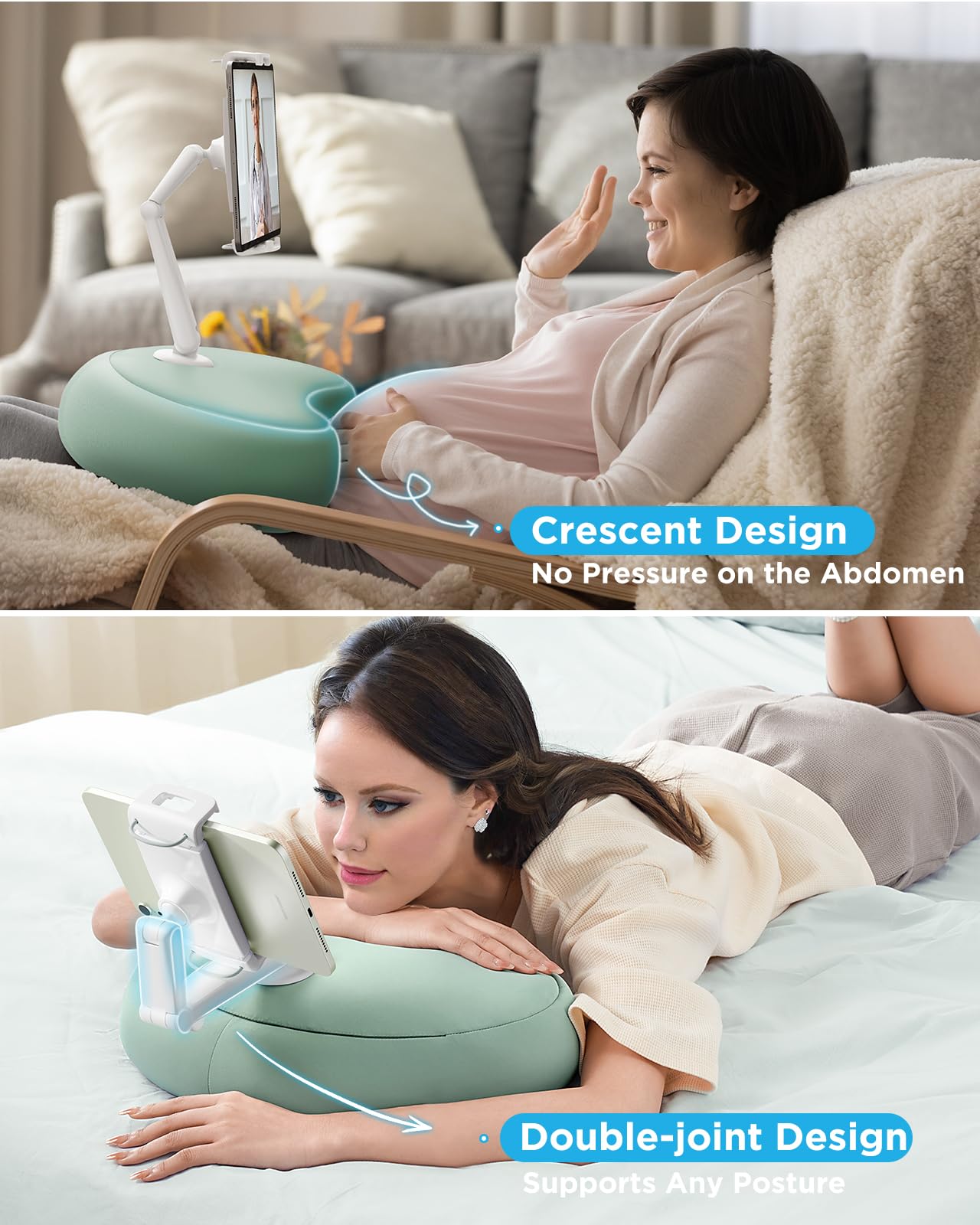 Ergonomic Design: The Crescent-Shaped Design Of The Tablet Stand Pillow Conforms To The Principles Of Ergonomics And Fits Snugly Against Your Belly, Providing A Comfortable And Soft Experience.