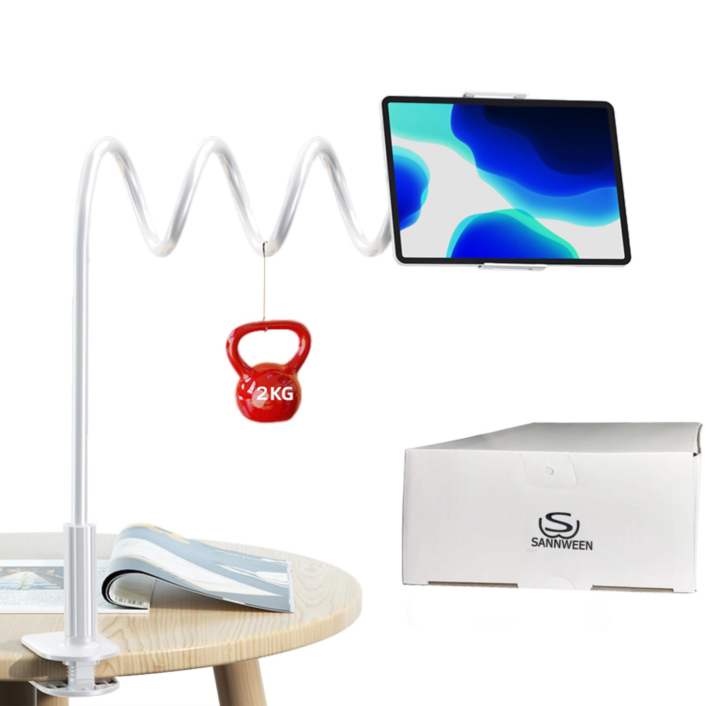 Sannween Gooseneck Phone Holder For Bed, Iphone Stand For Desk Recording Fliming Kindle Tablet Stand Accessories Overhead Phone