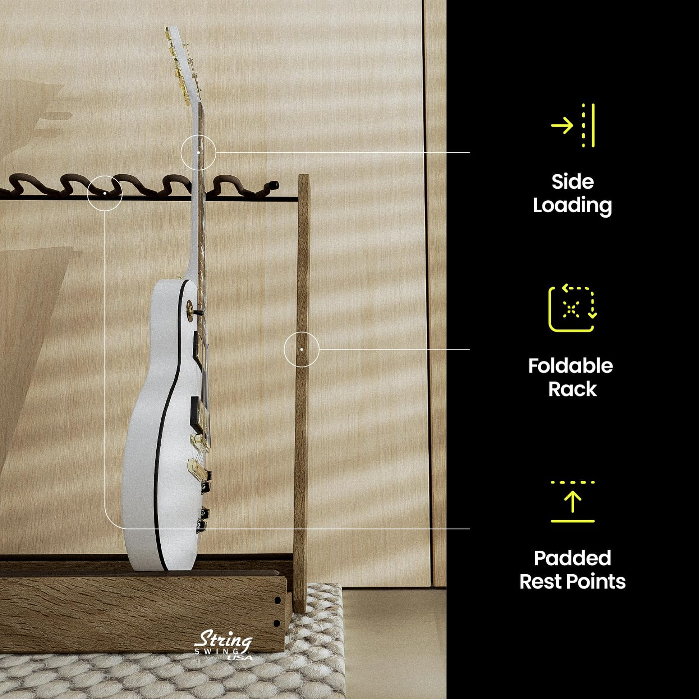 Side-Loading, Inline Guitar Rack. Holds Up To 6 Electric Guitars Or 3 Acoustic Guitars! Keep Your Guitars Within Reach In This Handmade Ash Hardwood Rack. Built To Take A Lifetime Of Abuse And Still Look Great.