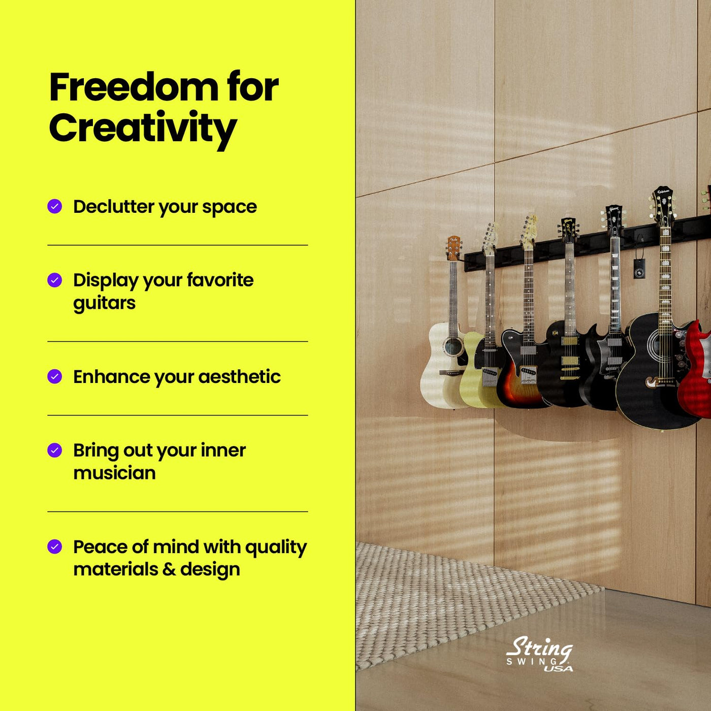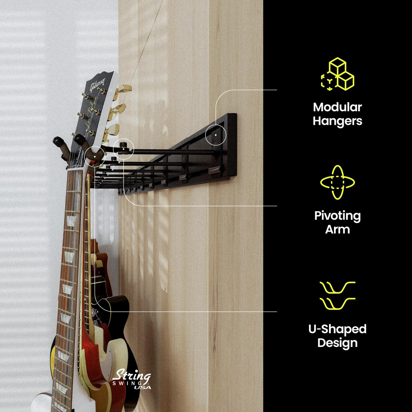 String Swing Guitar Wall Rack, Guitar Stand Mulitple Guitars, Hanging Guitar Stand For Acoustic & Electric Guitars, 10 Heavy Dut