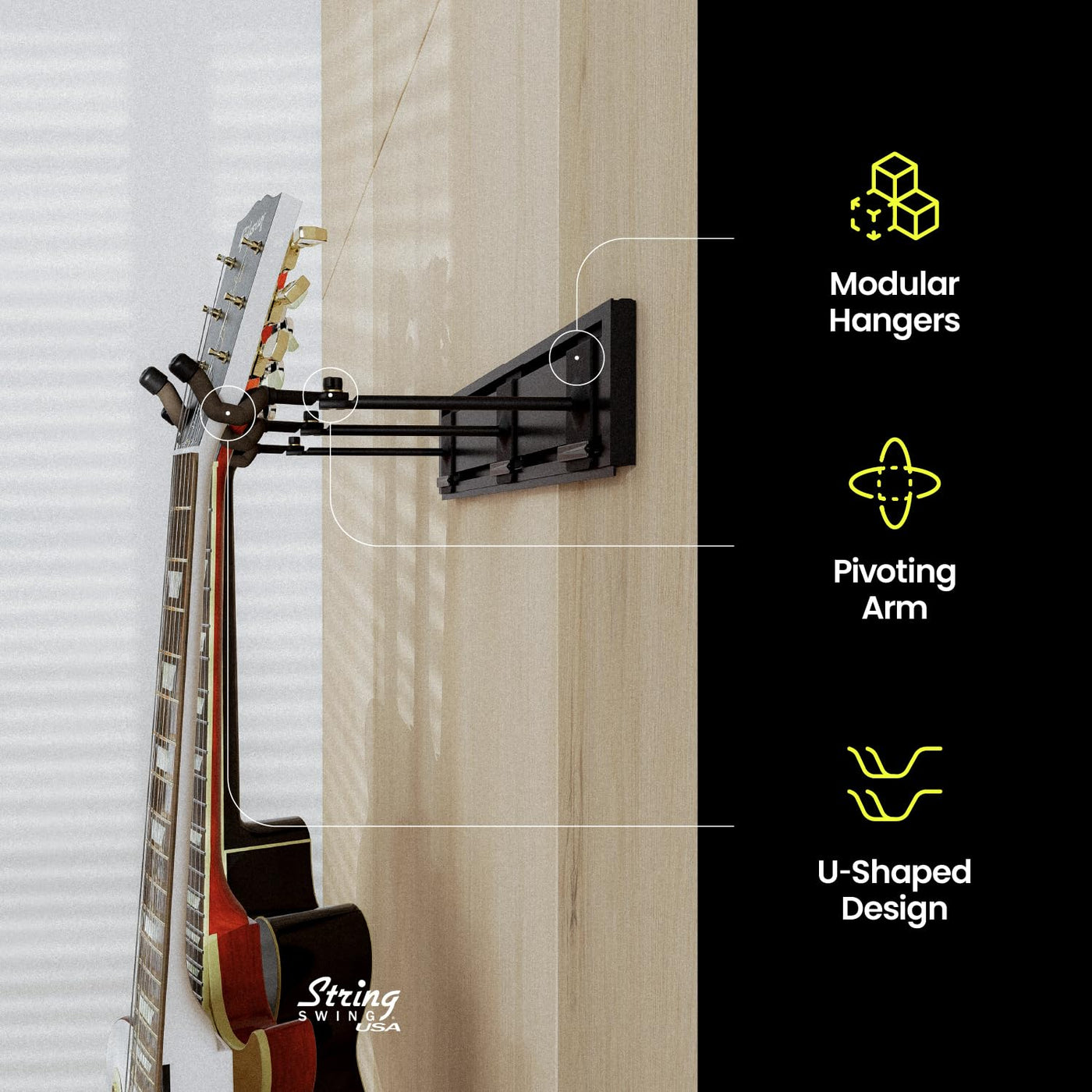 String Swing Guitar Wall Rack, Multiple Guitar Wall Mount, Guitar Organizer For Acoustic & Electric Guitars, 3 Padded Arm Hanger