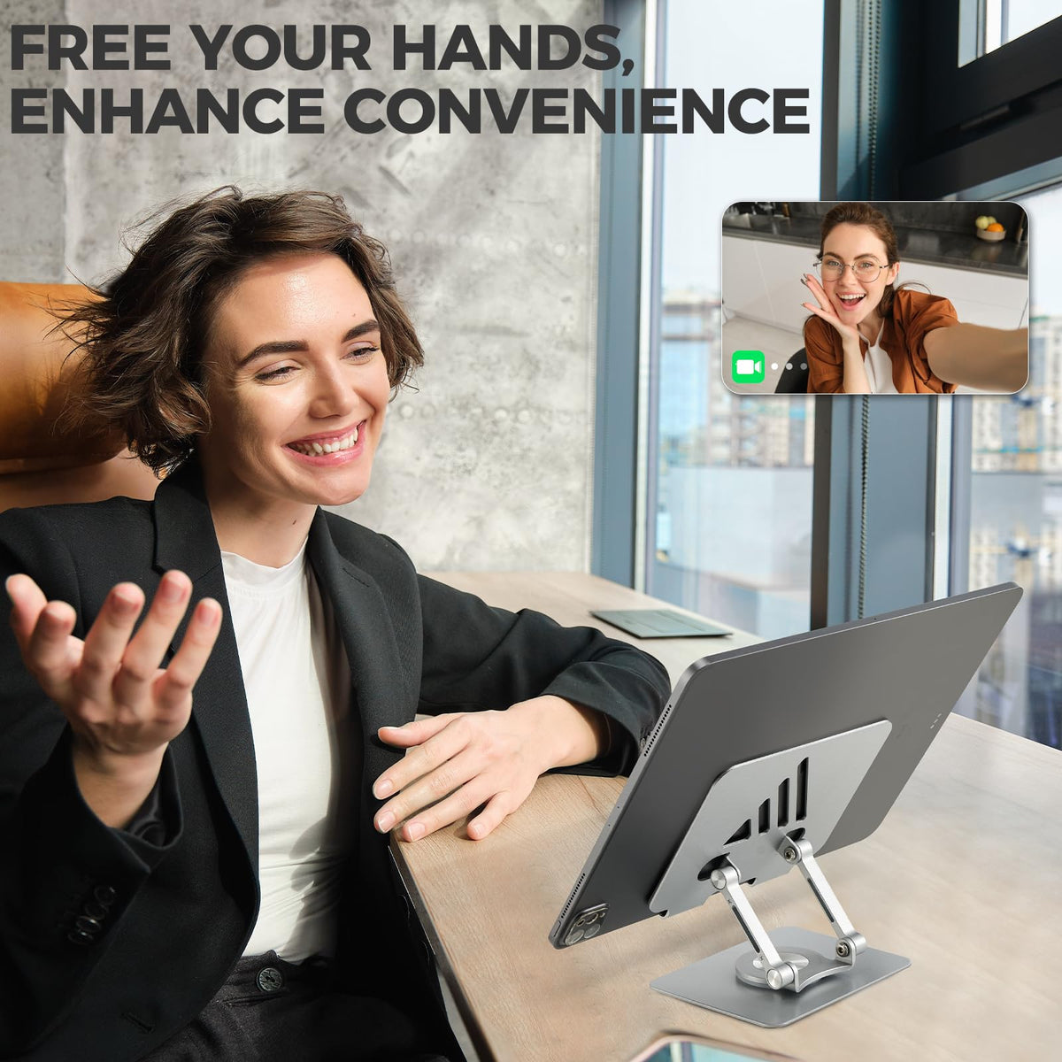 Our Tablet Stand Is Made Of High-Strength Carbon Steel With A Reinforced Base, Ensuring Stability And Durability. The Upgraded Mechanism Provides A Smooth 360 Rotation Experience, With A Damping Design That Delivers A Mechanical Feel, Enhancing The Product'S Quality.
