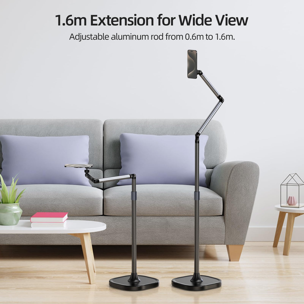 Telesin Magnetic Phone Tablet Floor Stand, Aluminum Alloy Phone Holder Stand For Video Recording, Overhead Bed/Sofa Phone Mount
