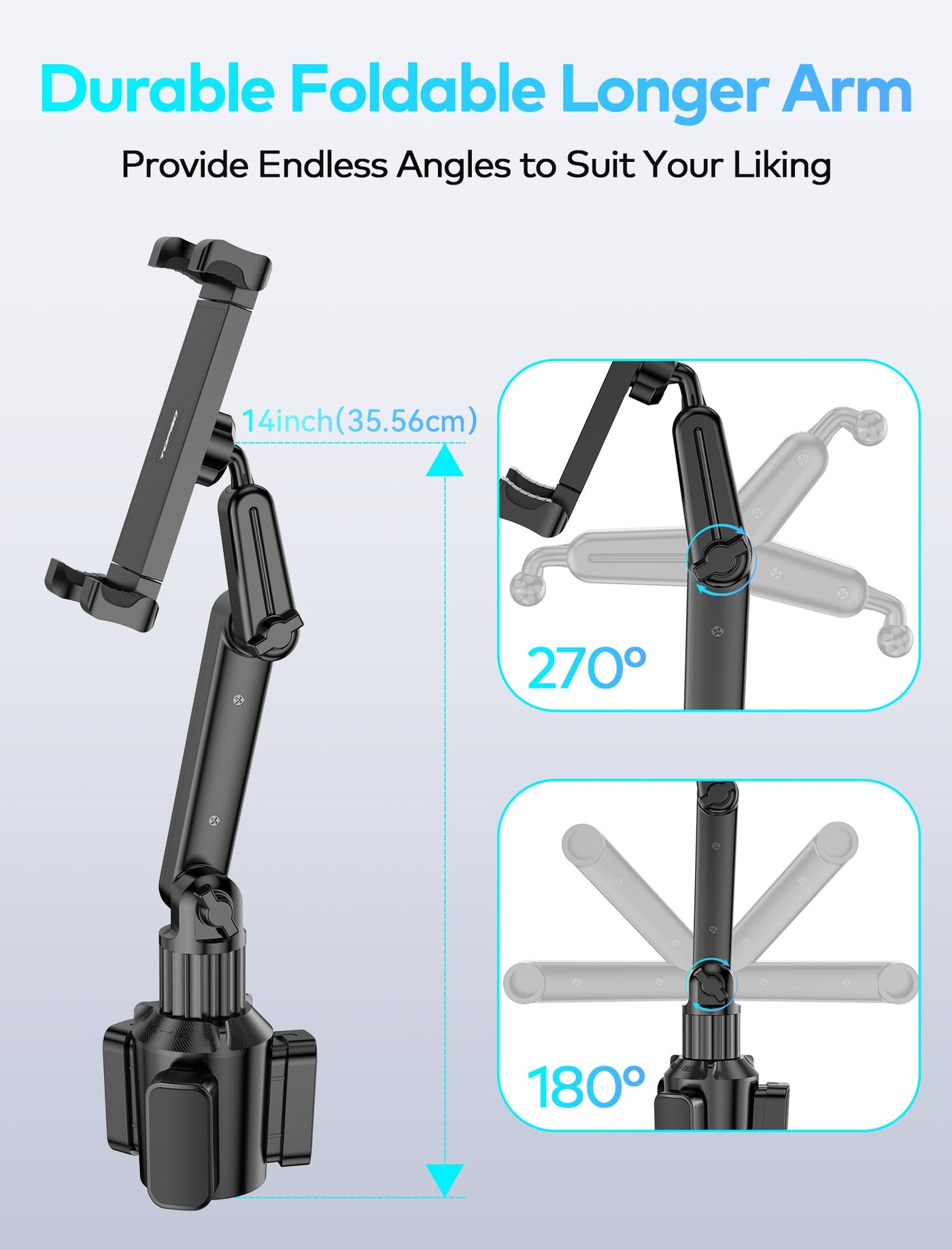 The Topgo Car Tablet Holder Combines Robust Durability With 360-Degree Adjustability To Deliver Exceptional Stability And Flexibility. Made From High-Quality Materials And Featuring An Upgraded Dual-Arm Design, This Mount Remains Steady Even On Rough Terrain And Is Secure In Extreme Weather Conditions. Its Large, Adjustable Base And Telescoping Arm Fit Most Round Cup Holders, Eliminating The Need For Adhesive Mounts On Dashboards Or Windshields, Which Can Leave Sticky Residues Or Cause Damage. Ideal As Both A Car Tablet Holder And A Truck Tablet Mount, This Versatile Accessory Keeps Your Device Easily Accessible, Enhancing Your Driving Experience And Making It A Must-Have For Any Vehicle.