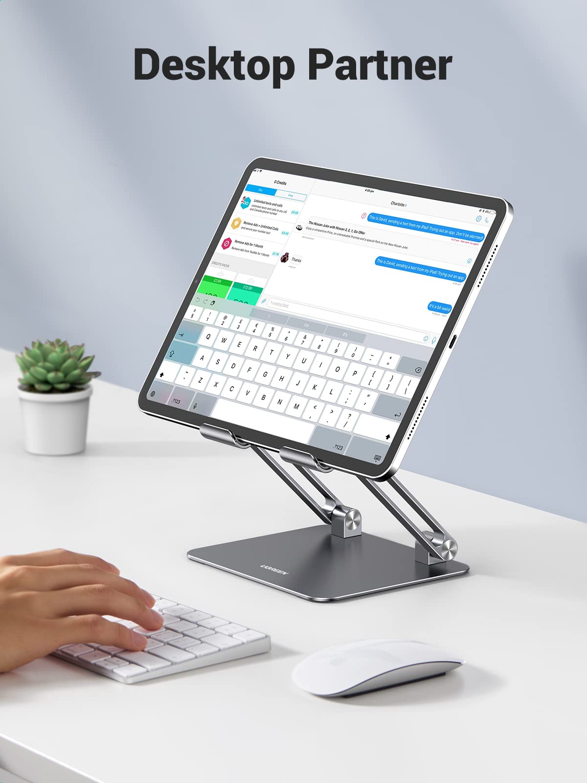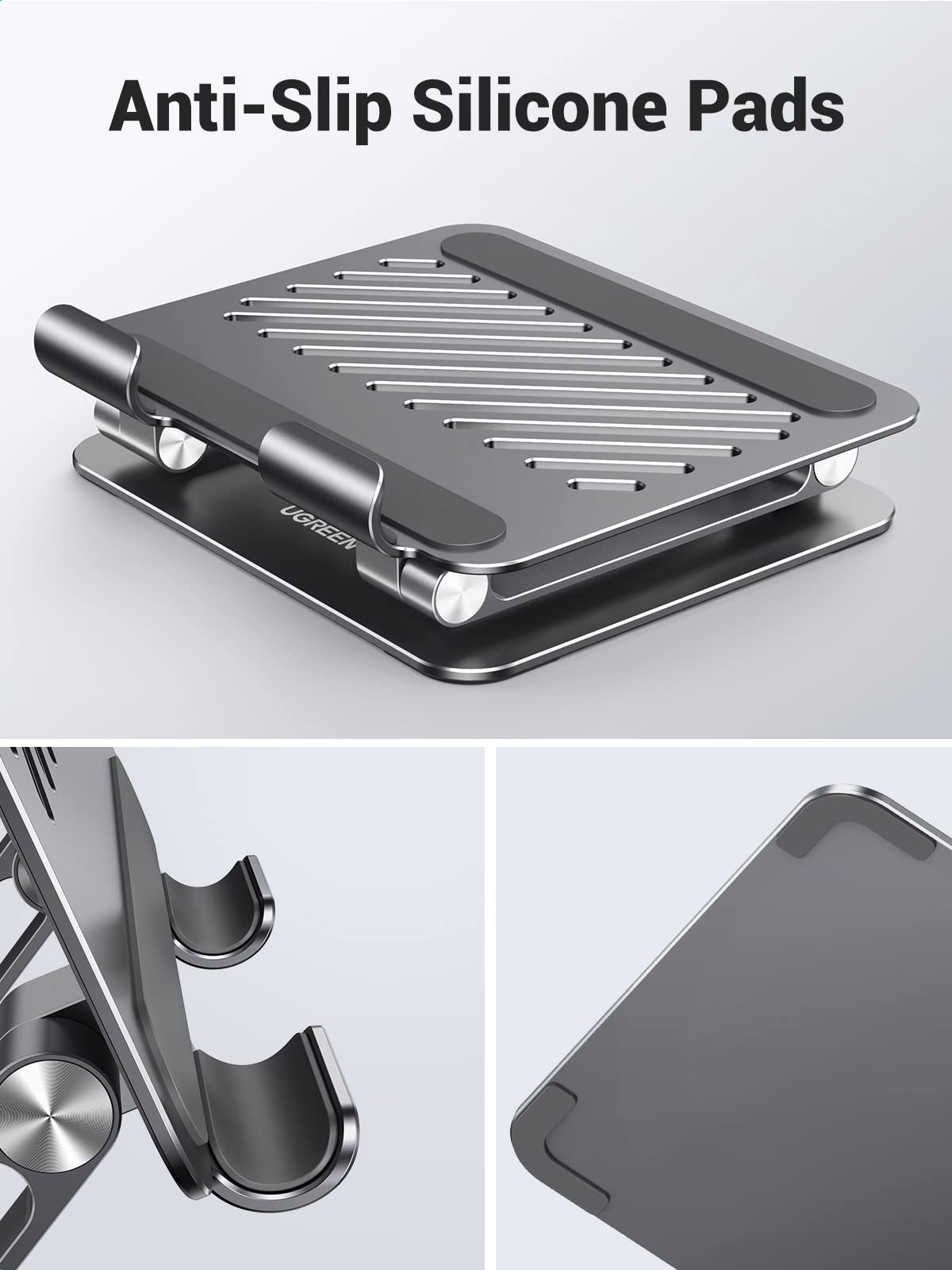 Ugreen Adjustable Ipad Stand Holder For Drawing Conveys A Feeling Of Urbanity And Timeless Elegance And Is Therefore Suitable For Freshening Your Desktop Or Workspace. Wide Panel: The Panel Width Is 140Mm, Not Afraid The Lens Is Raised. Dual Shafts Design: Composed Of A Sturdy Metal-Weighted Base, And Aluminum Dual Rod, Which Is Strong Enough To Accommodate Your Phone And Tablets. Enhanced Anti-Slip Base: With A Silicone-Covered Pad And A Rubber Hook Protects Your Tablet From Sliding And Scratching. More Use: You Can Easily Place This Ipad Stand On The Desktop Of Your Kitchen, Office, Living Room, Bedroom, Etc. Reserved Charging Port: Equipped With Unique Holes, Which Allow You To Connect Your Device For Charging Conveniently. Hollow-Out Cooling Design: With Forwarding Tilt And The Open Style Design Allow For Airflow For Your Ipad, No More Worry About Overheating. Foldable And Portable: This Tablet Desk Stand Can Be Fully Folded Into A Bag Size. It Also Takes Little Space When Stored And Is Easy To Carry In Your Bag, A Perfect Addition To Travel Or Business Trip. Angle Adjustable: This Stand Allows You To Customize The Angle Of Your Device. Relieve The Stiffness Of Your Back And Neck And Make You More Comfortable In Meetings, Watching Movies, Or Playing Games. Specification: Compatibility: Support 4-12.9 Inch Devices Material: Aluminum Alloy + Silicone Package Size: 179X155.5X48Mm Weight: 470G Package: 1*Ugreen Tablet Stand For Writing.