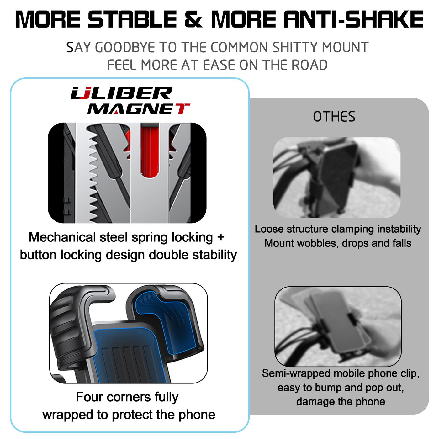 Ulibermagnet Motorcycle Magnetic Phone Mount,Heavy Duty Adjustable Magnetic Cell Phone Holder With Security Lock,Anti Shake 360