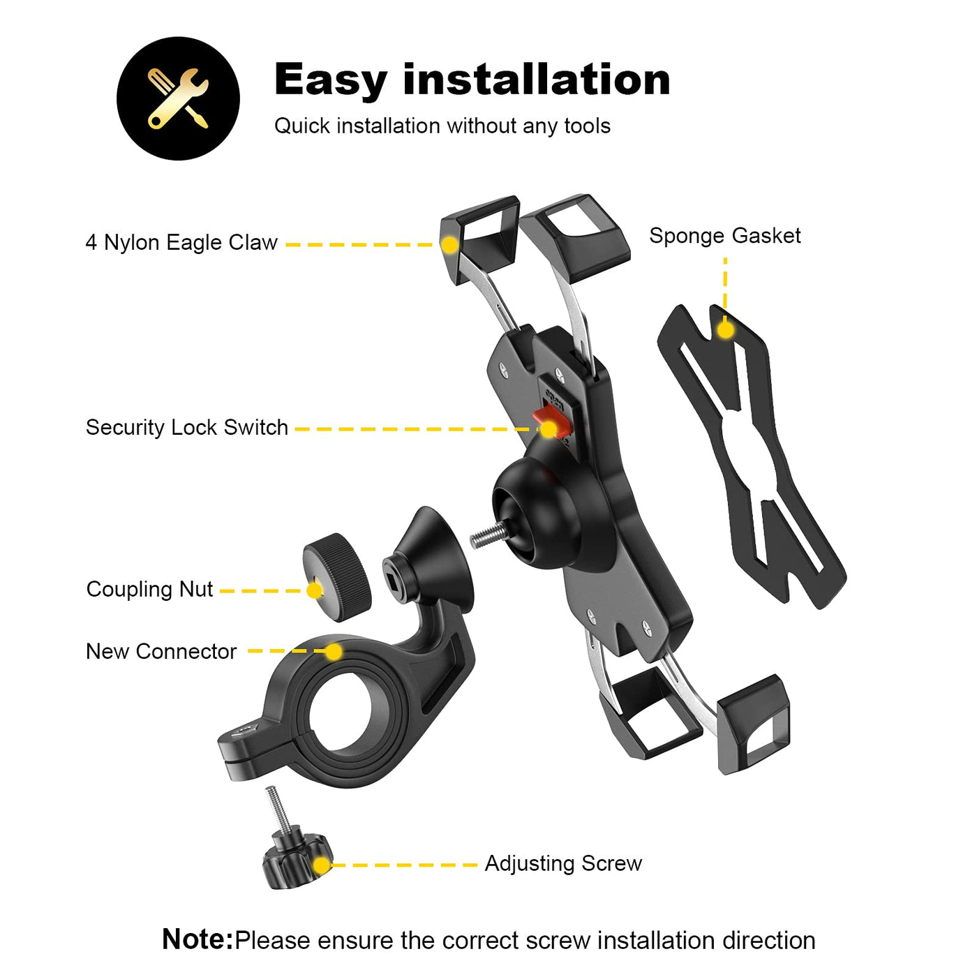 Unique Design ? The New Handlebar Connector Is Easier To Install And More Refined! ? One Switch Lock The 4 Corners,Open Or Closed! ? 4 Stainless Steel Support Corners Telescopic Hook, Firmly Lock The Phone To Prevent Shake, Never Fall. ? Support Substrate, Made Of Abs Engineering Plastic. It Is Sturdy And Durable. ? At The Same Time, Give 3 Sponge Cushion With Different Thickness. According To The Thickness Of Cell Phone, Select One Or Several To Combinate, Then Adhered It Between The Phone And The Support Substrate For Shock Absorption. ? Support Substrate, Made Of Abs Engineering Plastic. It Is Sturdy And Durable. ? Easy Install: Three Rubber Elastic Retaining Rings Are Provided. Use One Or More Or Not Use Depending On The Diameter Of The Handlebars. Easy To Operate And Easy To Install. Specifications: ? Material:Stainless Steel + Plastic ? Color: Black ? Approx Size: 120 X 60 Mm/ 4.73''X 2.37'' ? Applicable: Biking Sports ? Packing: Bike Phone Mount Holder * 1, Sponge Cushion * 3 Feature , Rubber Elastic Retaining Rings*3 What You Need, That'S What We Do. To Provide The Best Quality Products And Best Services Is Visnfa'S Aim.