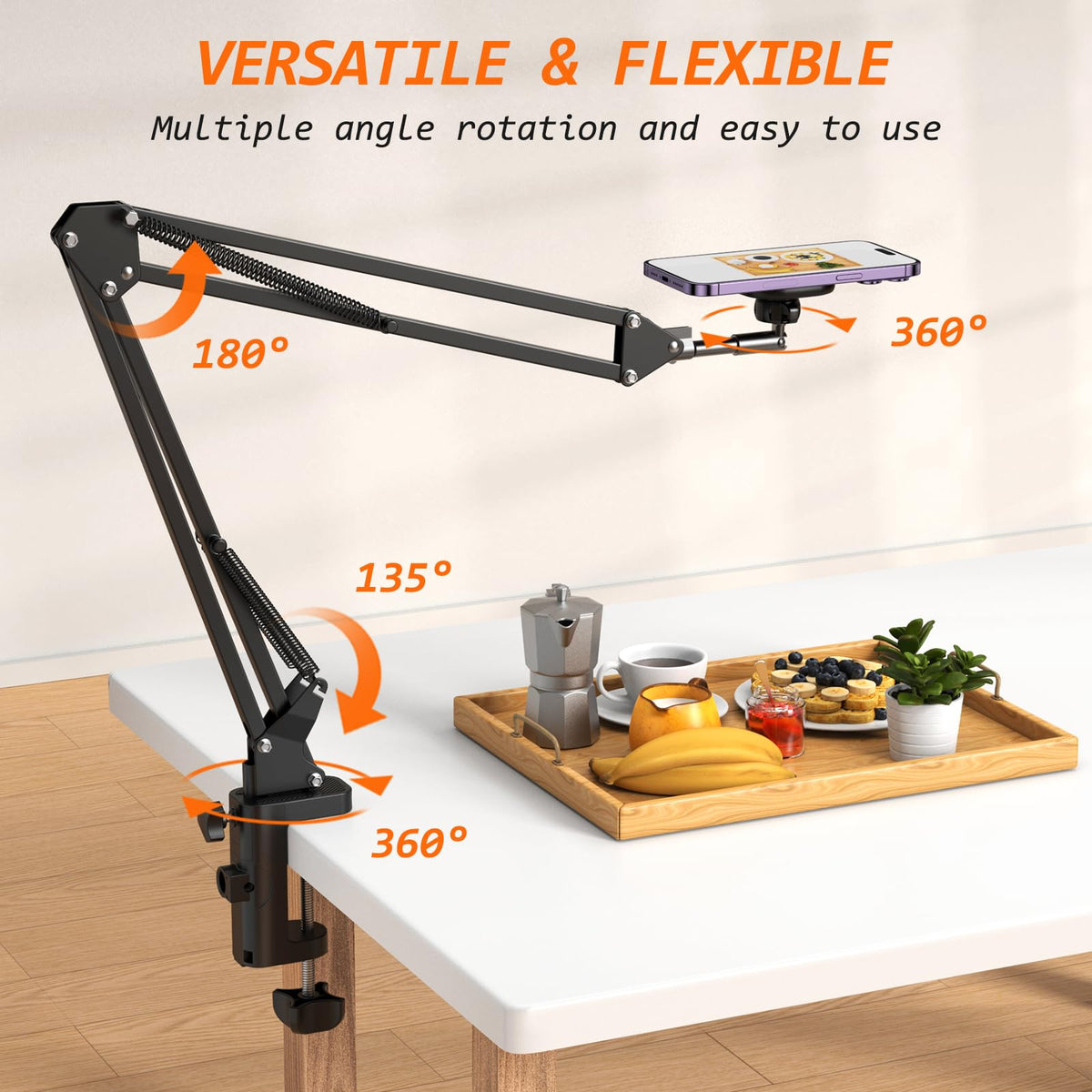 Vrig Magnetic Phone Holder Mount For Desk,Magsafe Flexible Overhead Phone Mount Stand,360 Free Adjustable Long Arm Cell Phone St