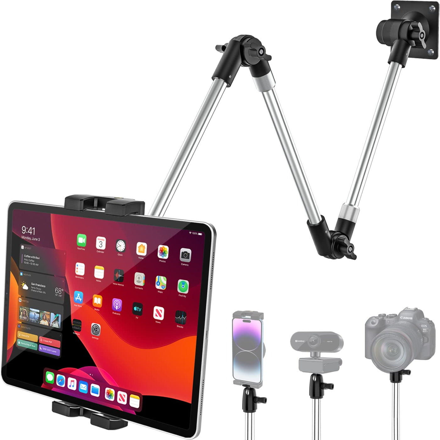Woleyi Adjustable Tablet Wall Mount Holder 35 Inch Foldable Arm Phone Ipad Mount For Wall, Webcam Stand Camera Mount, Fit For