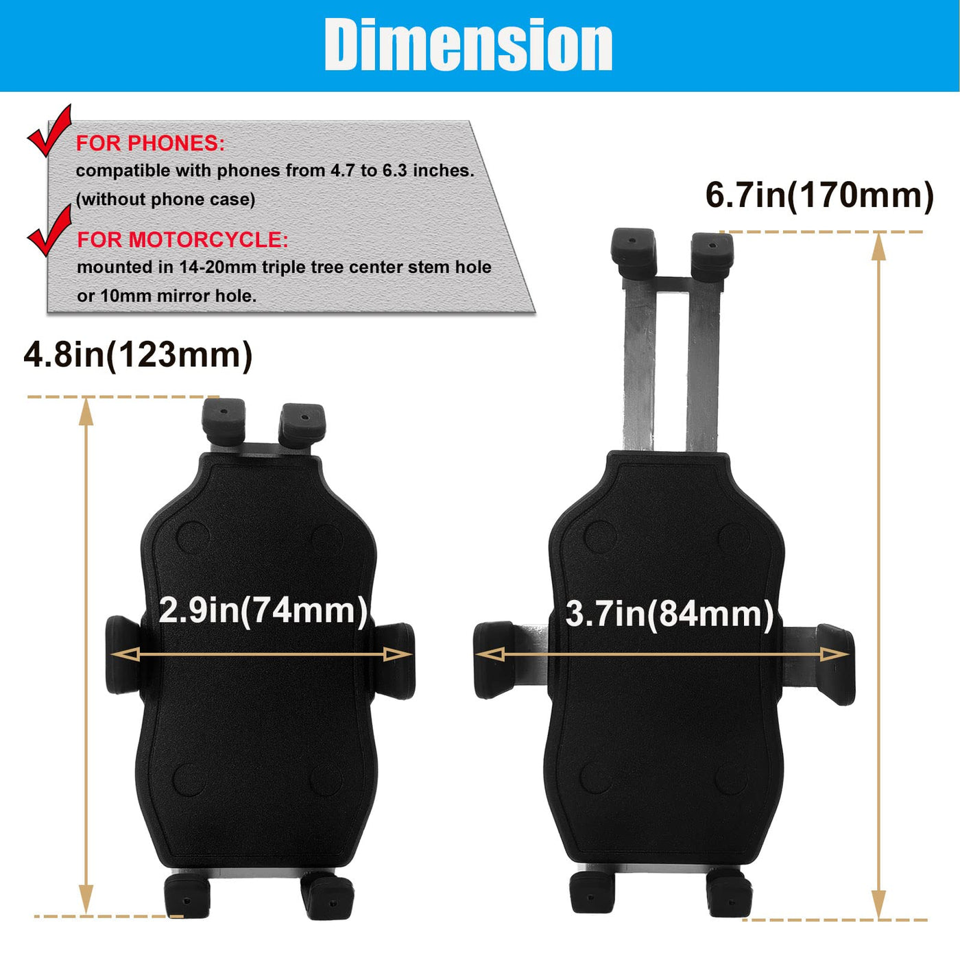 Fitment - This Motorcycle Phone Mount Installs In 14-20Mm Triple Tree Center Stem Hole Or 10Mm Mirror Hole. For S1000Rr For Suzuki Gsx-R 600 700 1000 For Yzf R1 R6 For Cbr250R 300R 400R For Kawasaki Ninja 400. | Universal For Most Phones - This Universal Phone Mount Is Compatible With Phones From 4.7 To 6.3 Inches. | Ultra Stable - There Are 6 Silicone Clips To Fix The Top, Body And Bottom Of The Smartphone. To Ensure That The Phone Is Secured To The Device. So You Don'T Have To Worry About The Phone Falling Off The Device. | Extremely Flexible - 360