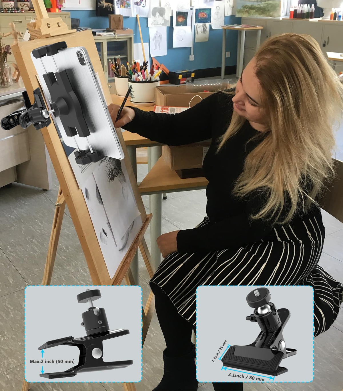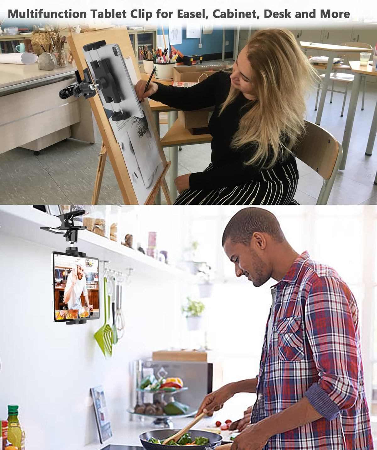 Car Sun Visor Tablet Mount, Truck Visor Tablet Holder Clip [Upgrade Clip Never Fall] Multifunctional Vehicle Phone Clamp With 1/4'' Screw, For Ipad, Galaxy Tabs, Fire, Iphone, 4-12.9''