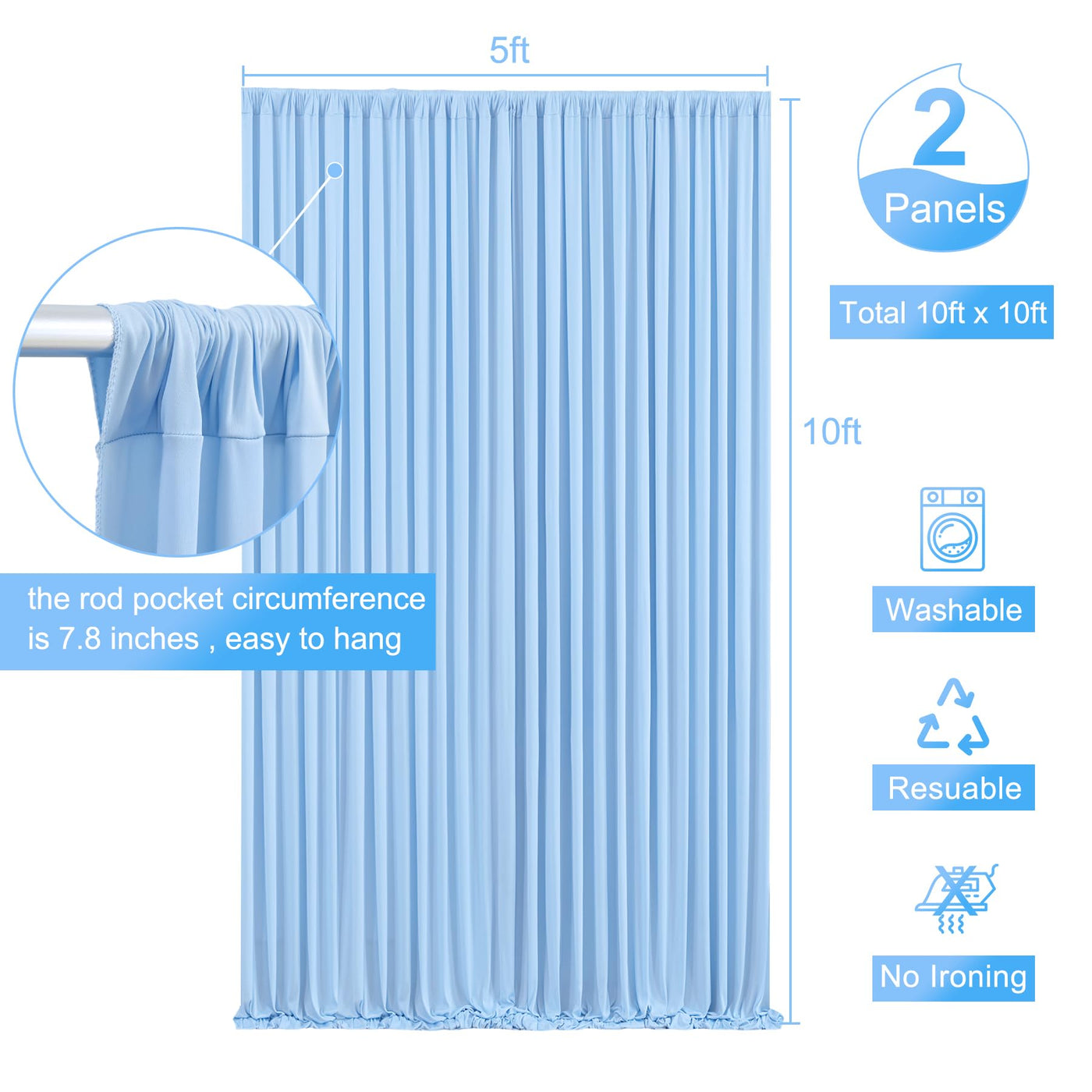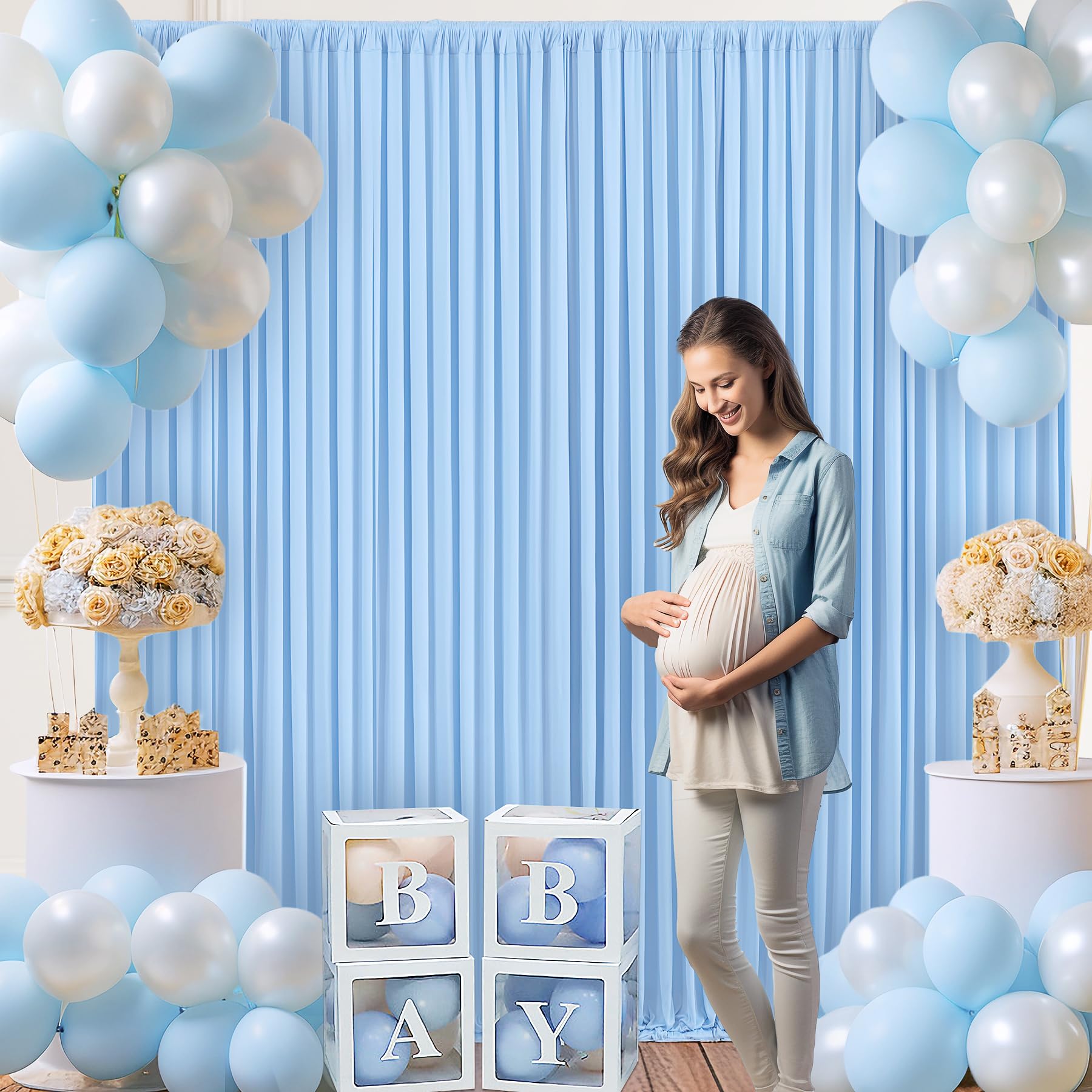 10X10 Baby Blue Backdrop Curtain For Baby Shower Parties Wrinkle Free Light Blue Curtains Backdrop Drapes Fabric Decoration For