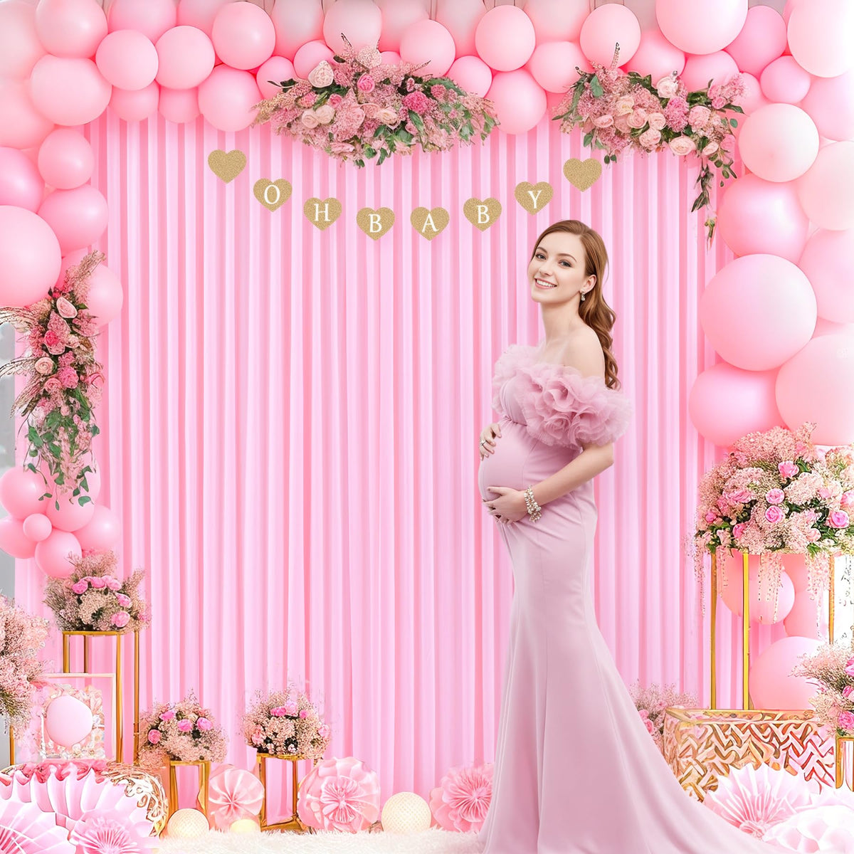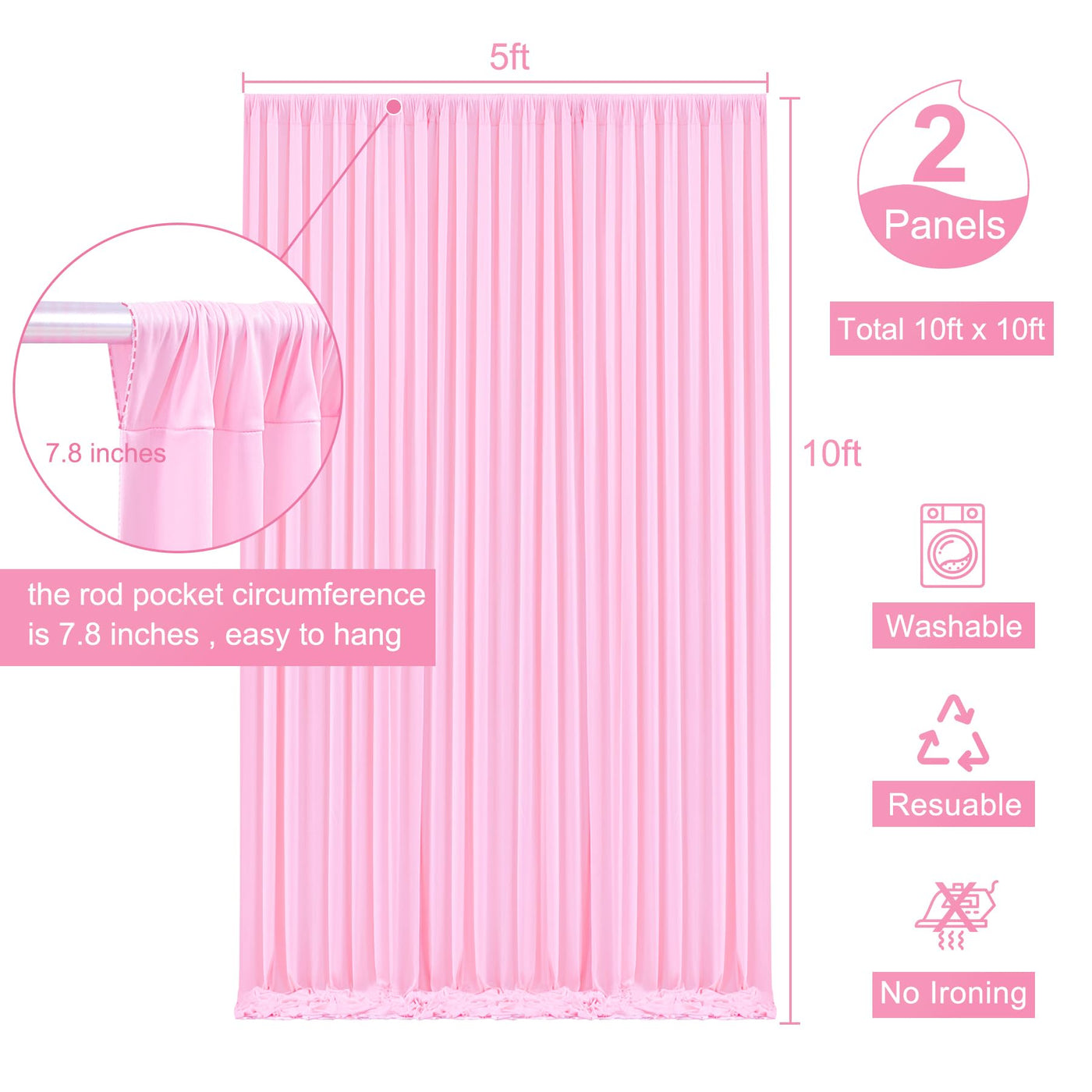 10X10 Pink Backdrop Curtain For Parties Baby Shower Wrinkle Free Pink Photo Curtains Backdrop Drapes Fabric Decoration For Weddi