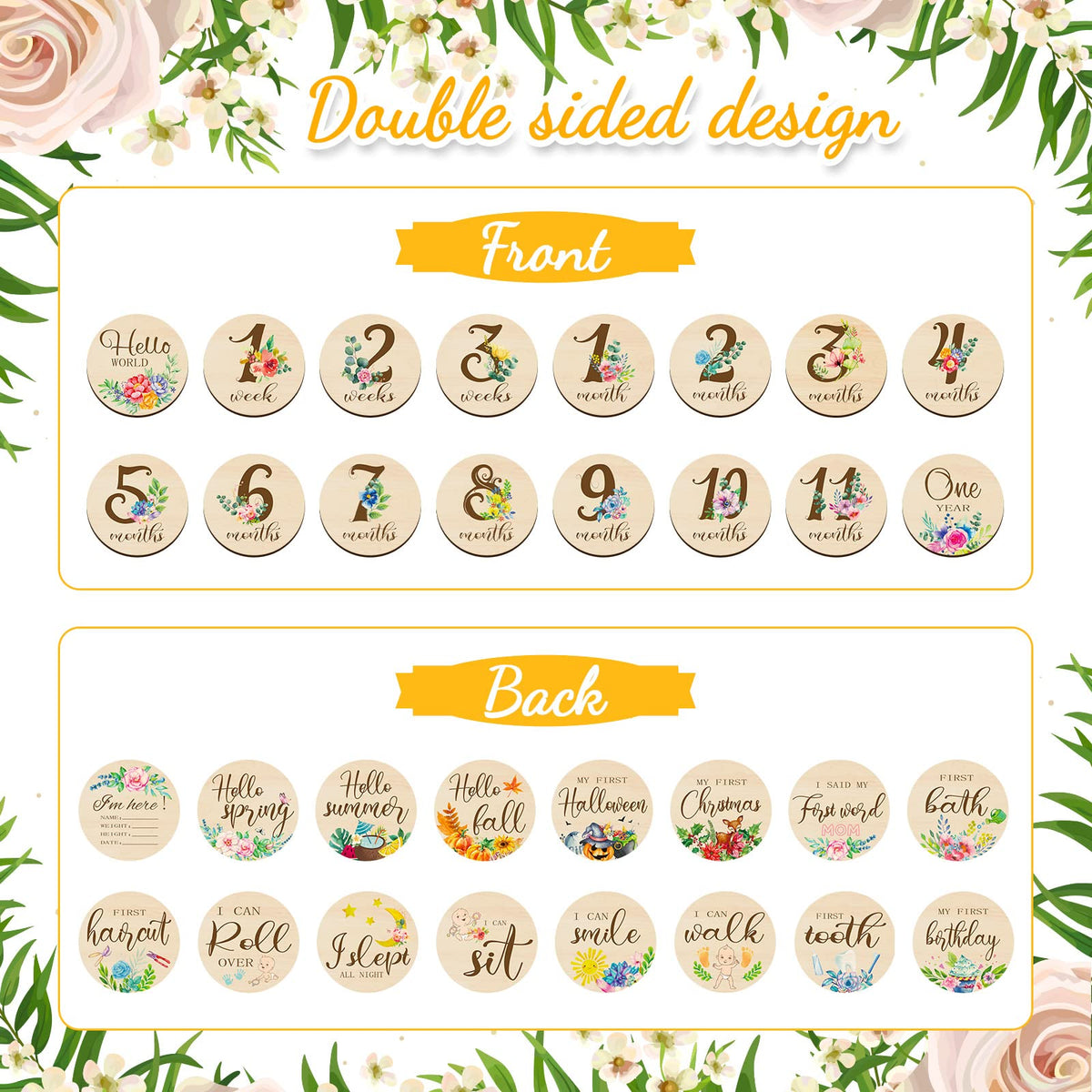 Q: How should I care for the wooden milestone cards?A: To maintain the quality of the milestone cards, keep them in a dry place and avoid exposure to excessive moisture. Wipe them clean with a soft cloth if necessary.