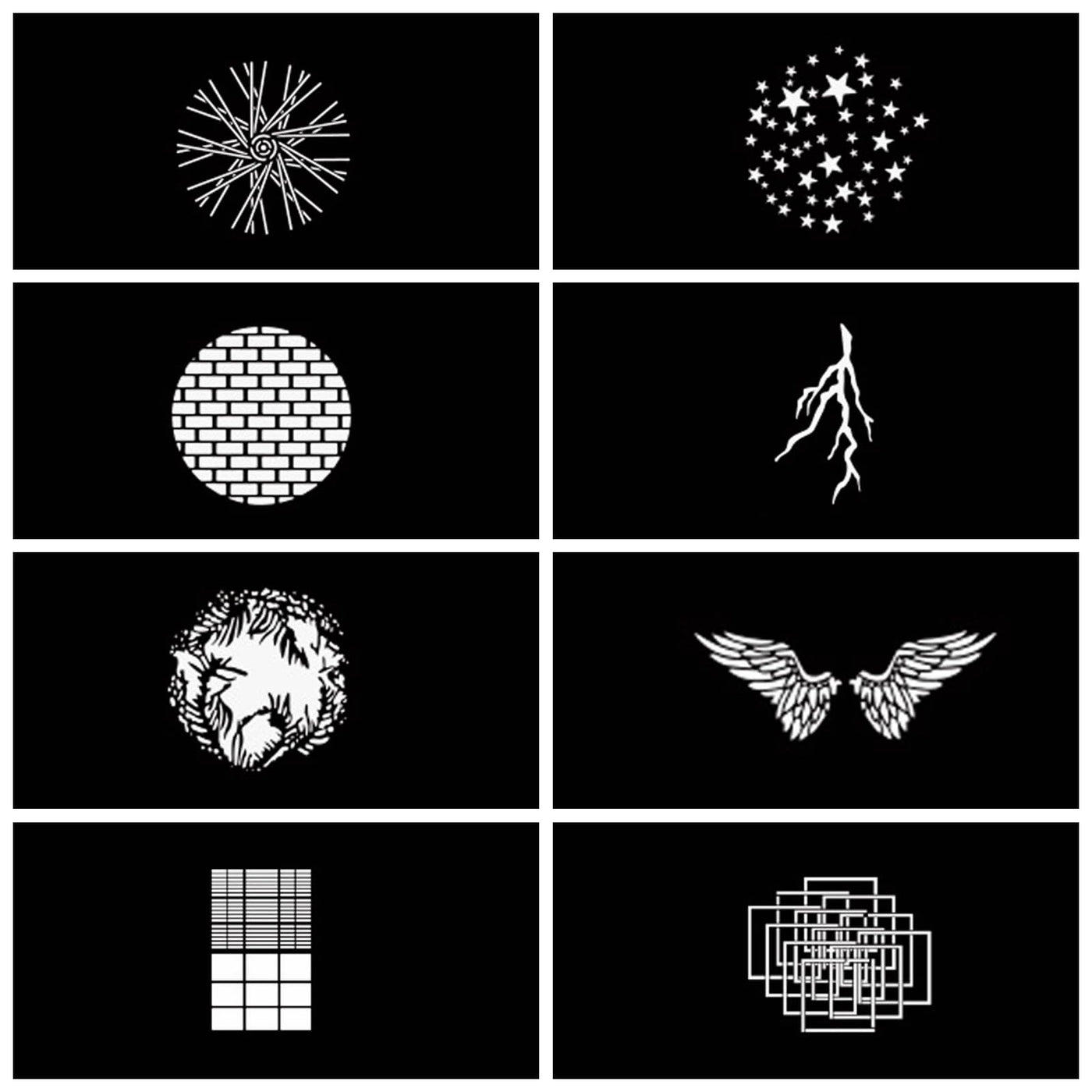 Q: What materials are the gobos made from?A: The gobos are made from high-quality stainless steel, ensuring durability, resistance to deformation, and corrosion for long-lasting use.