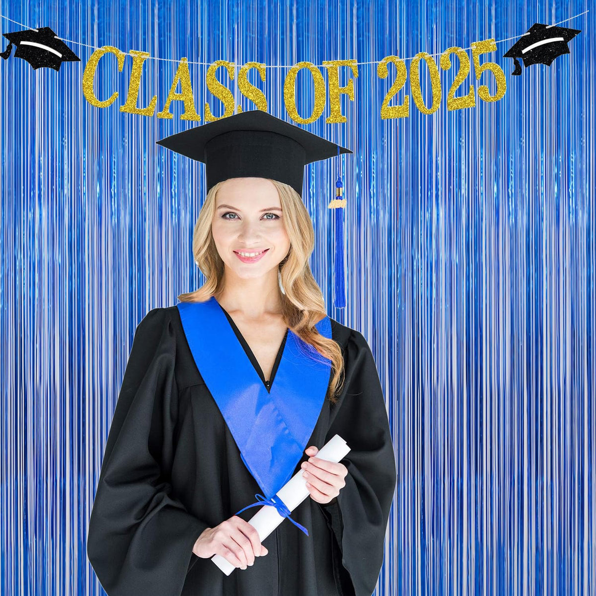 2 Pack Blue Door Streamers Party Decorations 3.3Ft X 6.6Ft,Blue Tinsel Foil Fringe Streamers Backdrop For Birthday,Graduation,Oc