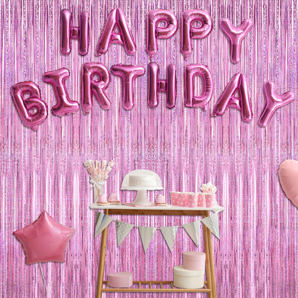 Q: Is the material of the backdrop durable?A: Yes, the backdrop is made from 23 μm PET material, which is lightweight, non-tearable, and colorfast, ensuring durability for your celebrations.