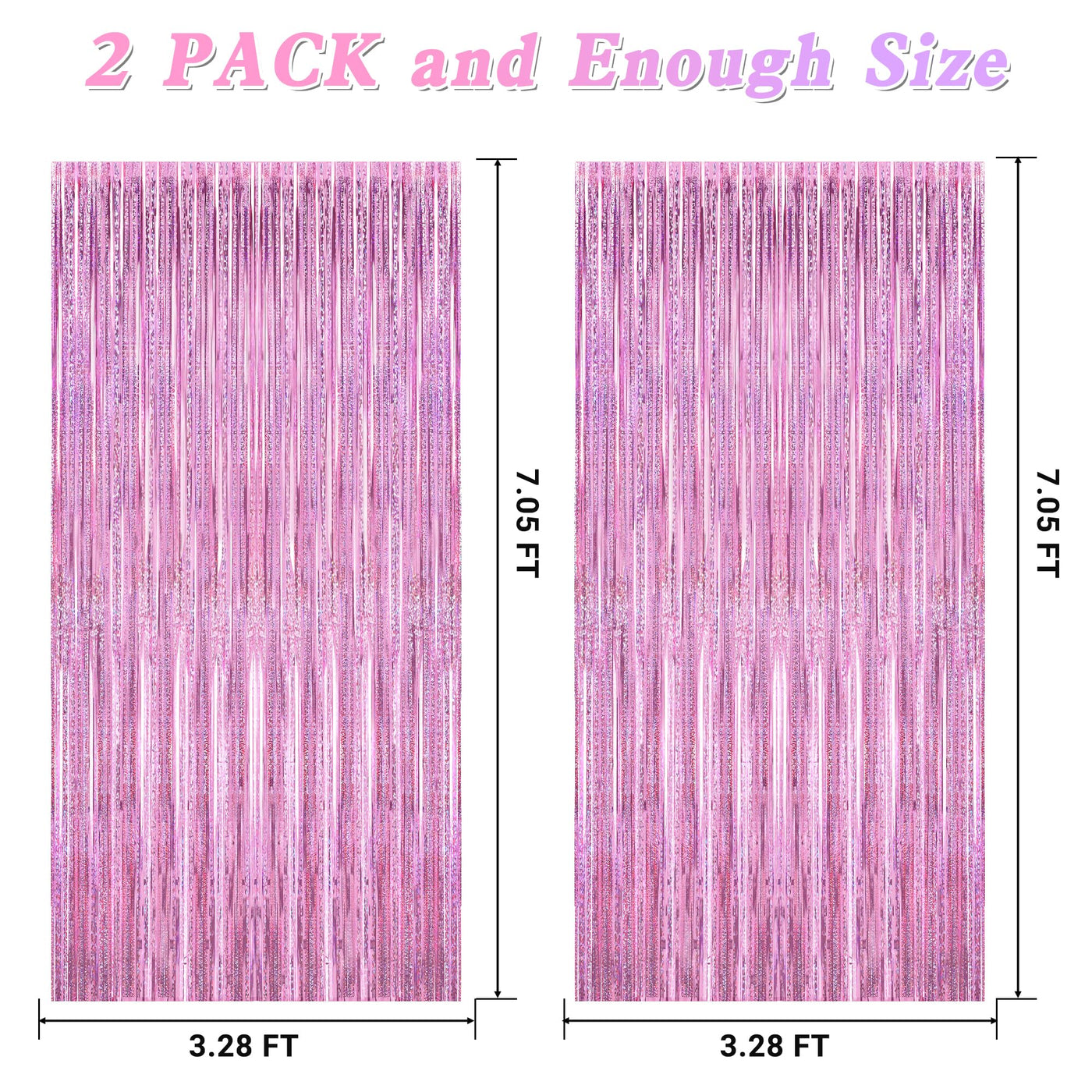 2 Pack Glitter Pink Backdrop, 3.28 Ft X 7.05 Ft Valentines Party Decorations, Laser Pink Fringe Curtains Foil Streamer Tinsel Ba