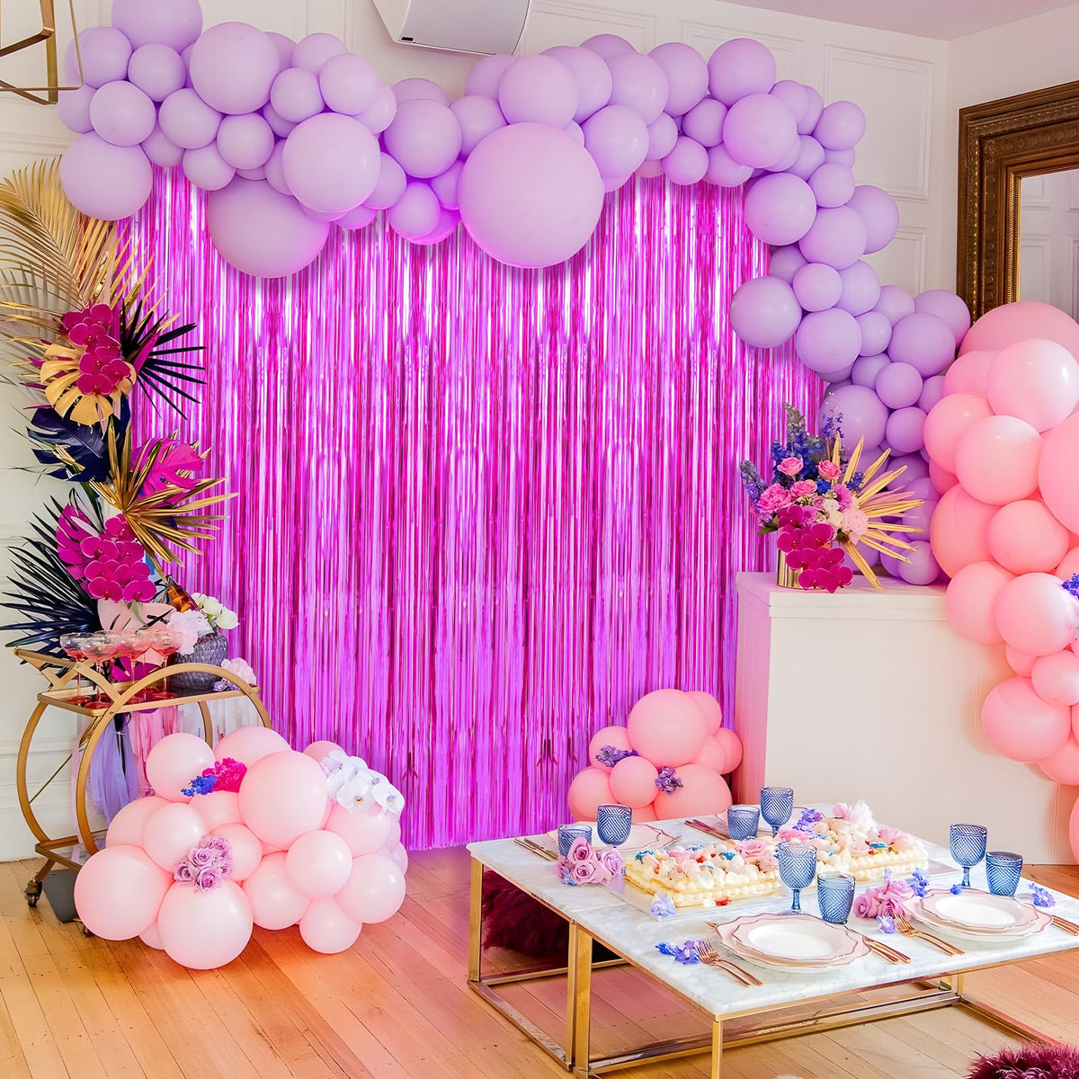 Q: What types of events are suitable for this tinsel backdrop?A: This backdrop is versatile and perfect for a variety of occasions including birthday parties, weddings, holidays, graduations, and themed parties.