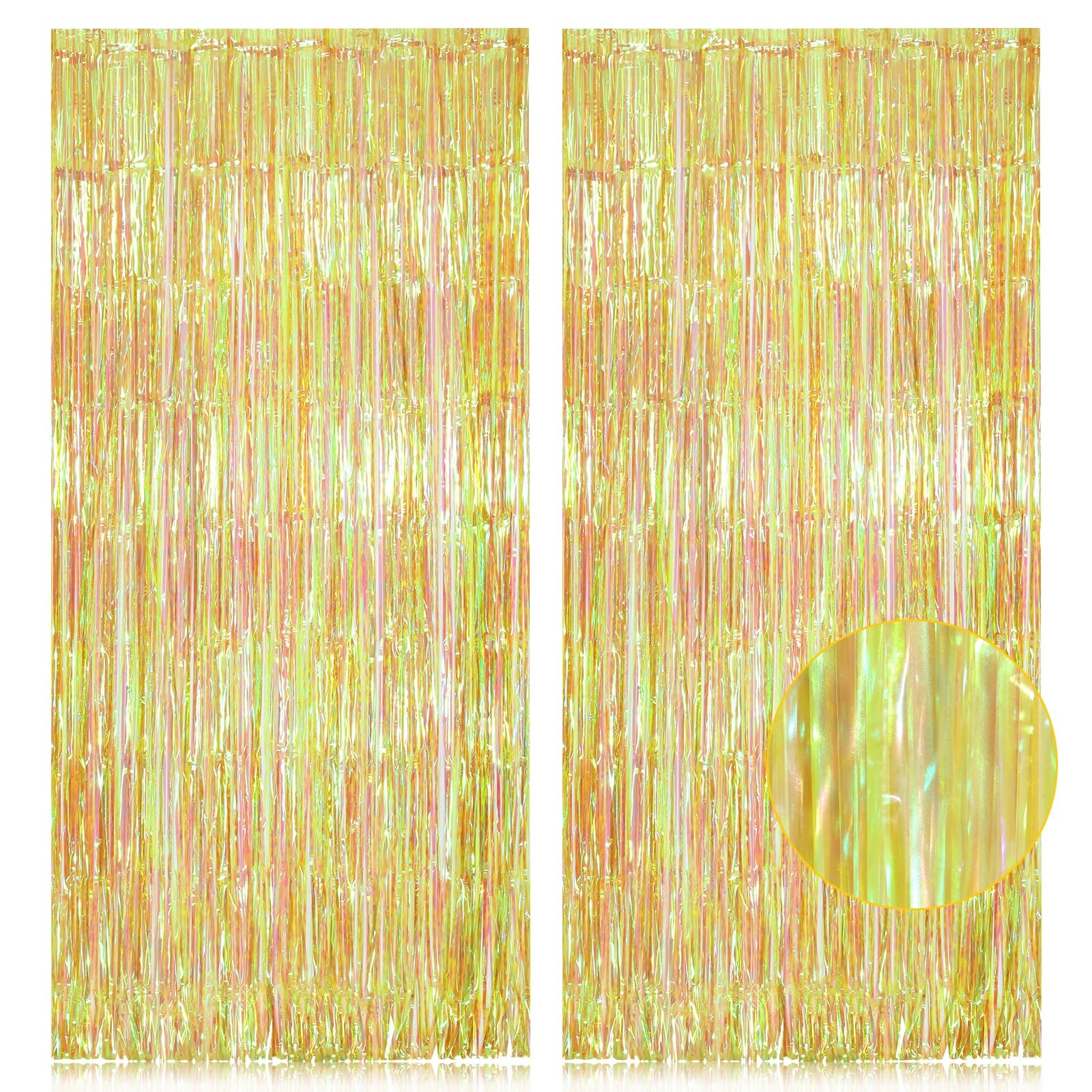 2 Pack Neon Green Foil Fringe Backdrop Curtains Party Decoration, 3.2 X 8.2 Ft Tinsel Backdrop Curtains For Parties Photo Booth