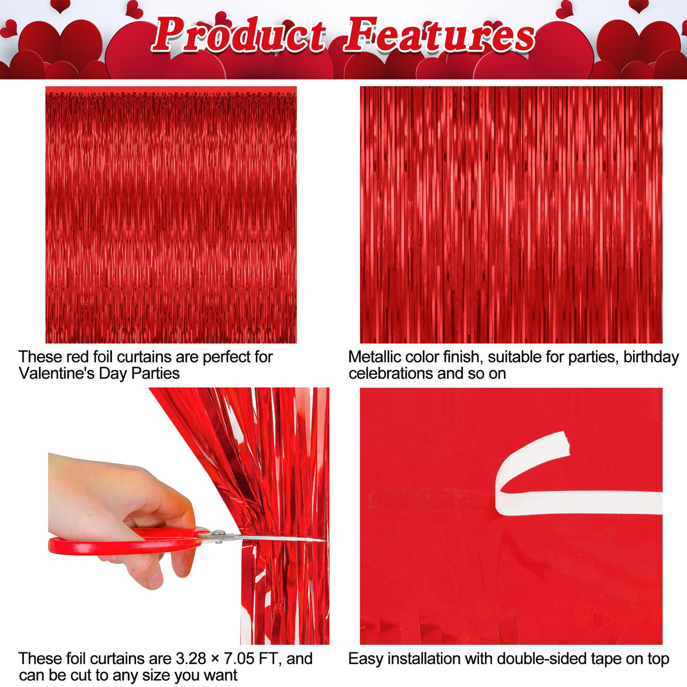 Celebrate Valentine'S Day With These Valentines Backdrop! Quantity: 2 Pcs Size: 3.28 Ft X 7.05 Ft Colors: Red Design: Metallic Glossy Design Features: Large Size: Can Be Cut To Length As Needed Non-Tearable: 23 M Pet Material, Lightweight And Non-Tearable Easy To Install: Comes With Adhesive Tape, No Assembly Required Use Occasions: Valentines, Wedding, Anniversaries, Party, Birthday Warm Tips: These Red Backdrop Curtains Come With Adhesive Paper, But Please Do Not Stick Them On Rough And Uneven Surfaces.