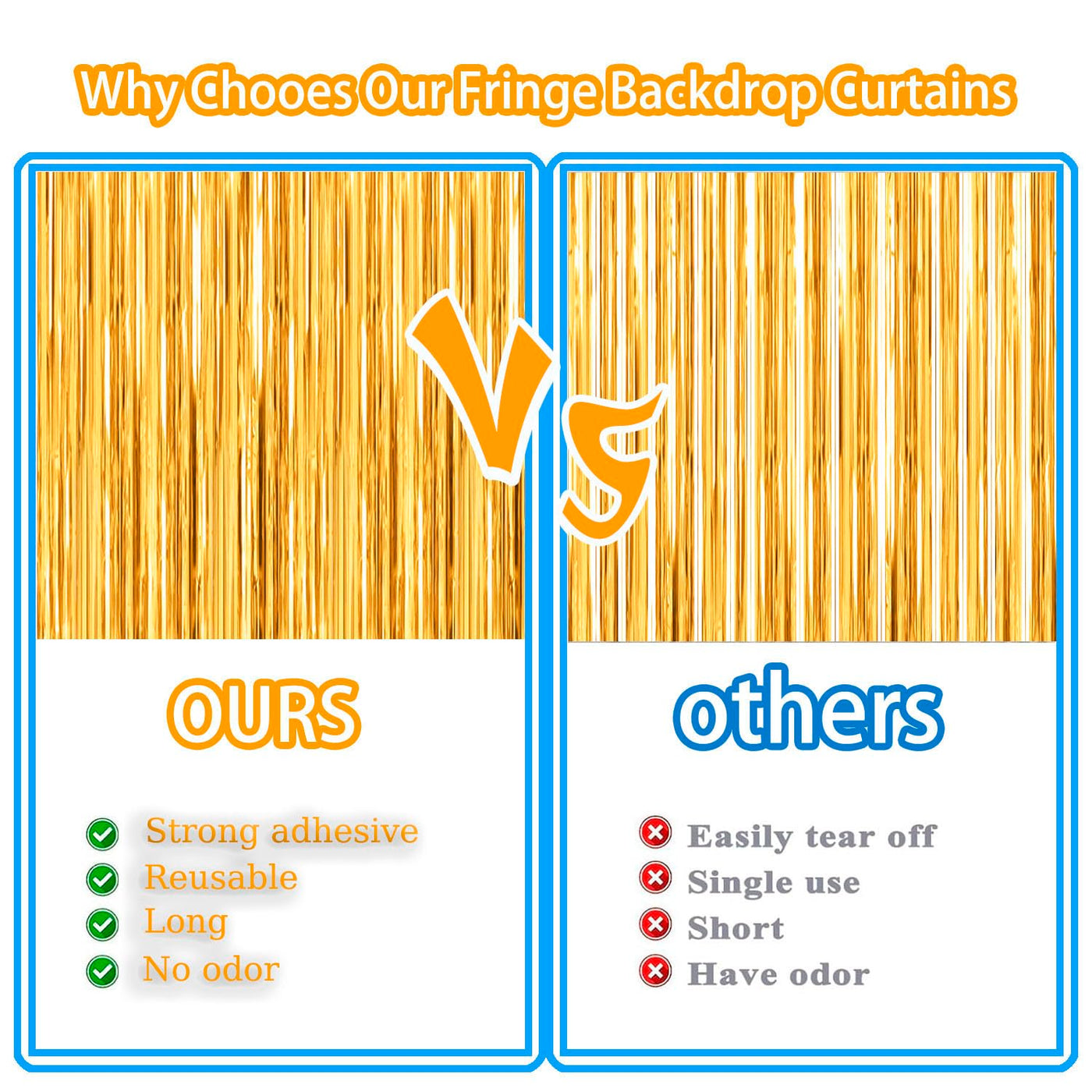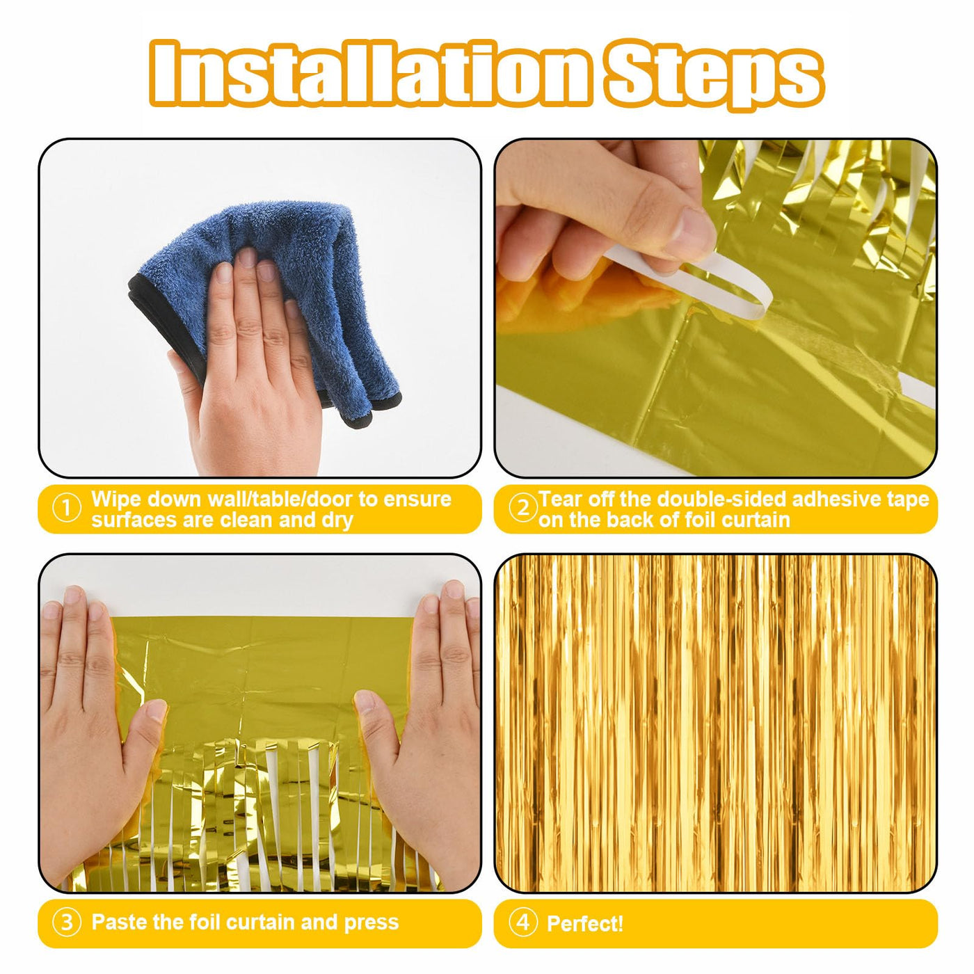 ?Package Content? 20 Pieces Of Fringe Curtains, 3.3Ft Wide And 6.6Ft Long. The Adhesive Strip Is Included At The Back Side Of The Curtains, So You Can Stick The Curtains To Your Walls, Windows, Or Doors With Ease. | ?Celebration Party Decorations? These Unique Fringe Curtains Will Give Your Party An Atmosphere Of Joy And Happiness. Want To Decorate Your Party? Choose Our Shiny Fringe Backdrop Curtains! | ?Easy To Use? Paste Or Hang Them On A Smooth Surfaces , It Doesn'T Take A Lot Of Effort To Paste Them, Just Tear Off The Back Of Double-Sided Adhesive Tape And Paste Them Gently. | ?Wide Applications? The Foil Backdrop Are Wonderful Finishing Touch For Any Theme Party Such As Birthday, Baby Shower, Wedding, Engagement, Bridal Shower, Bachelorette, Holiday Celebration, Halloween, Graduation, Anniversary, Hollywood Party, Homecoming, Christmas Or New Year, Etc. | ?Premium Material? The 20 Pack Tinsel Backdrops Are Made Of High-Quality Shiny Tinsel, Non-Toxic, Odorless, And Non-Fading, Safe For Families With Children And Pets. The Curtains Are Thicker And Heavier, Which Means They Are Less Likely To Wrinkle Or Crease, Making Them Durable And Long-Lasting. Moreover, Our Foil Fringe Streamers Are Made Of Sturdy And Flexible Pet Material, Making Them Resistant To Breaking Or Tearing.