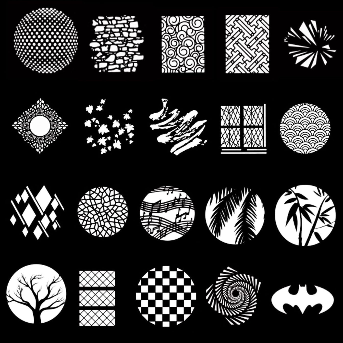 Q: Are the gobos durable and easy to maintain?A: Yes, the gobos are made from sturdy metal, resistant to deformation and corrosion. Their hollow-out design ensures lightweight handling, and they can be easily cleaned with a soft cloth to maintain their appearance and functionality.